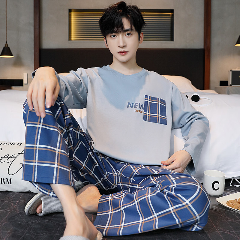 睡衣男士秋冬季长袖纯棉春秋款男式学生运动休闲可外穿家居服套装