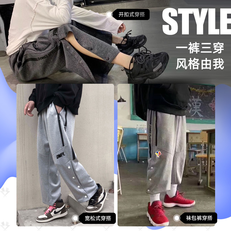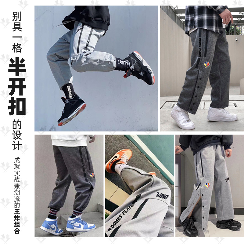cba排扣裤篮球训练裤fog半开扣裤透气实战运动长裤直筒阔脚裤男女