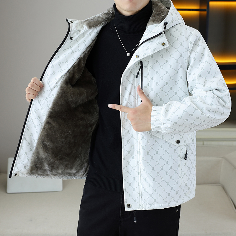 工装外套男秋冬季加绒加厚款连帽夹克设计感机能多拉链冲锋款衣服