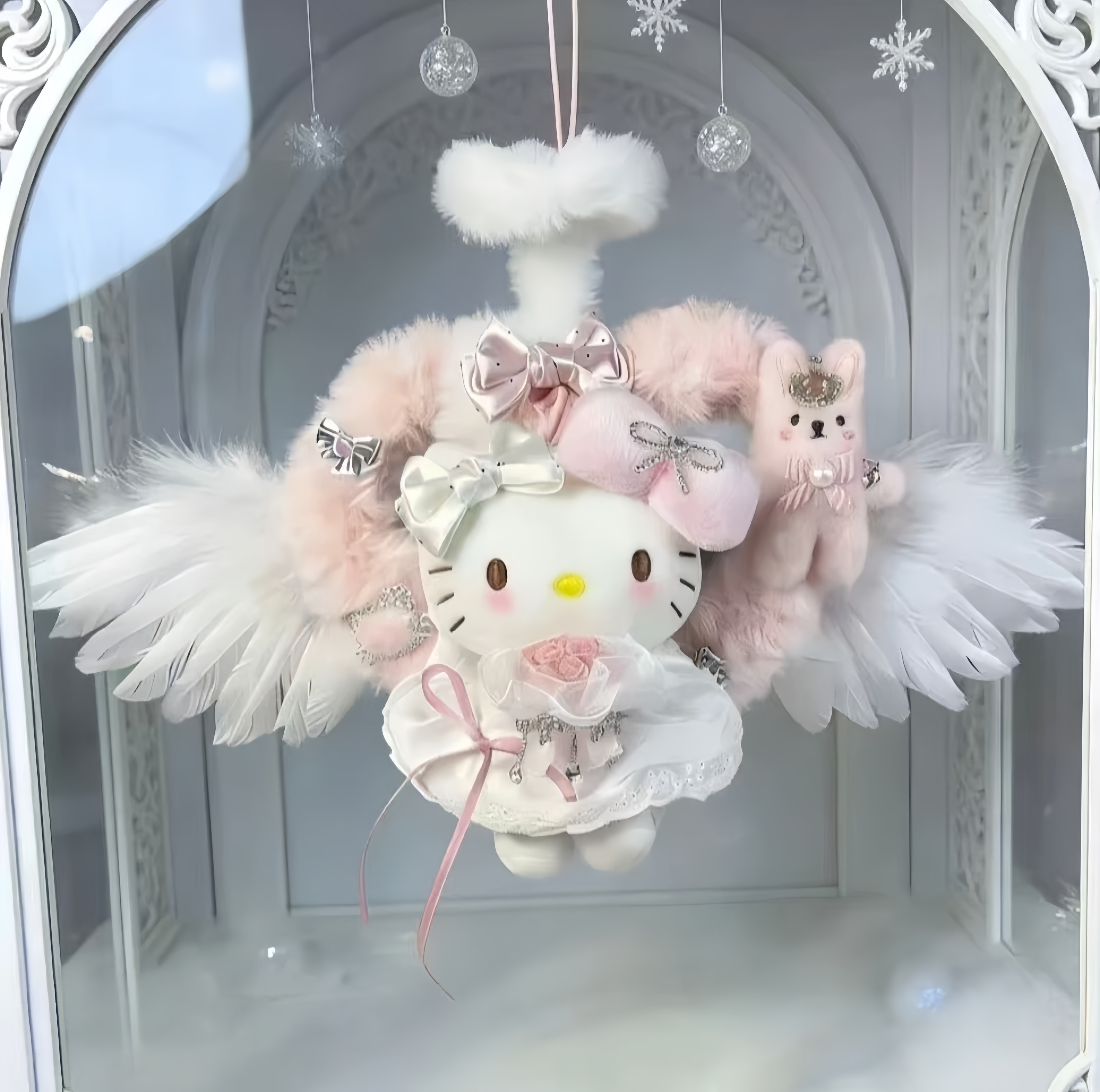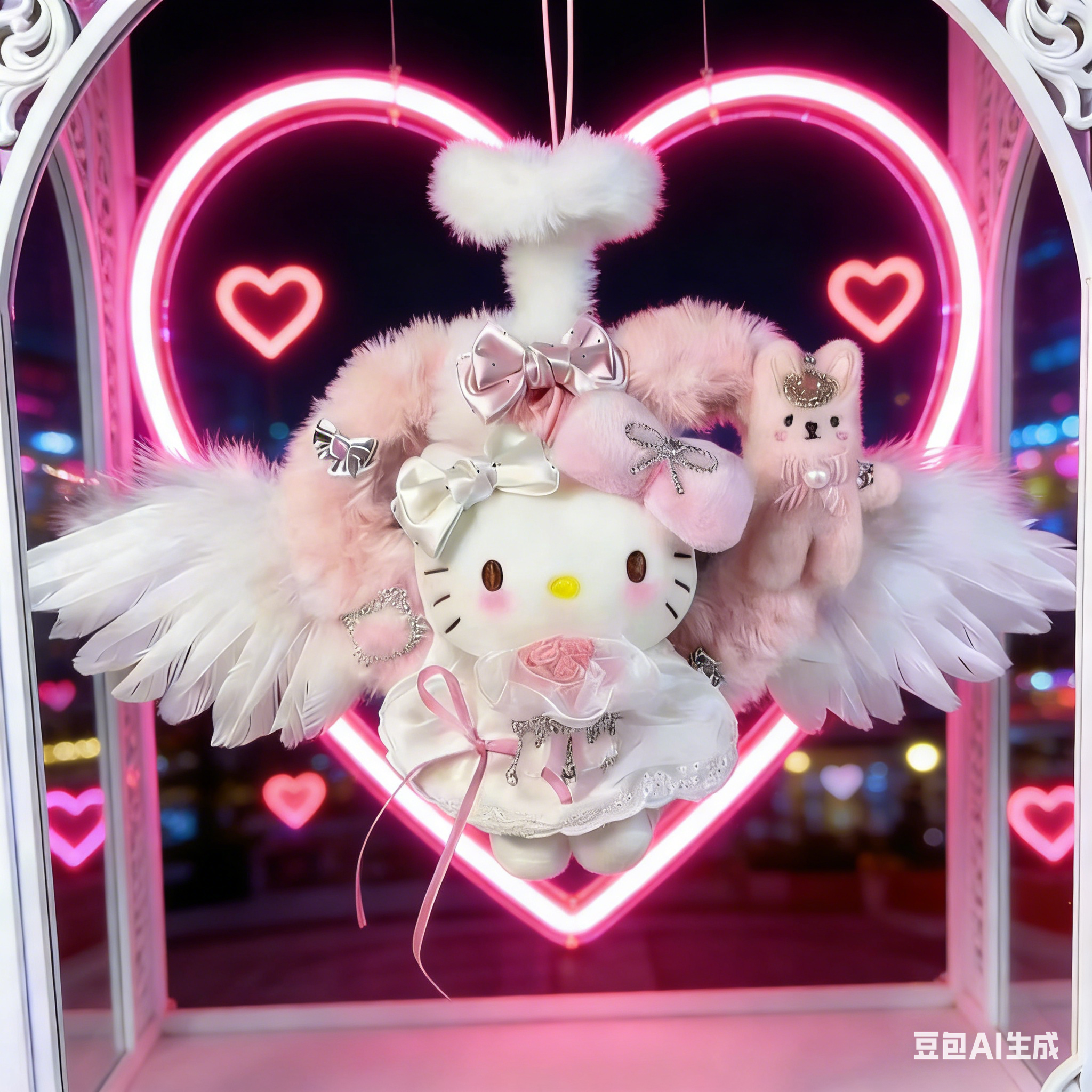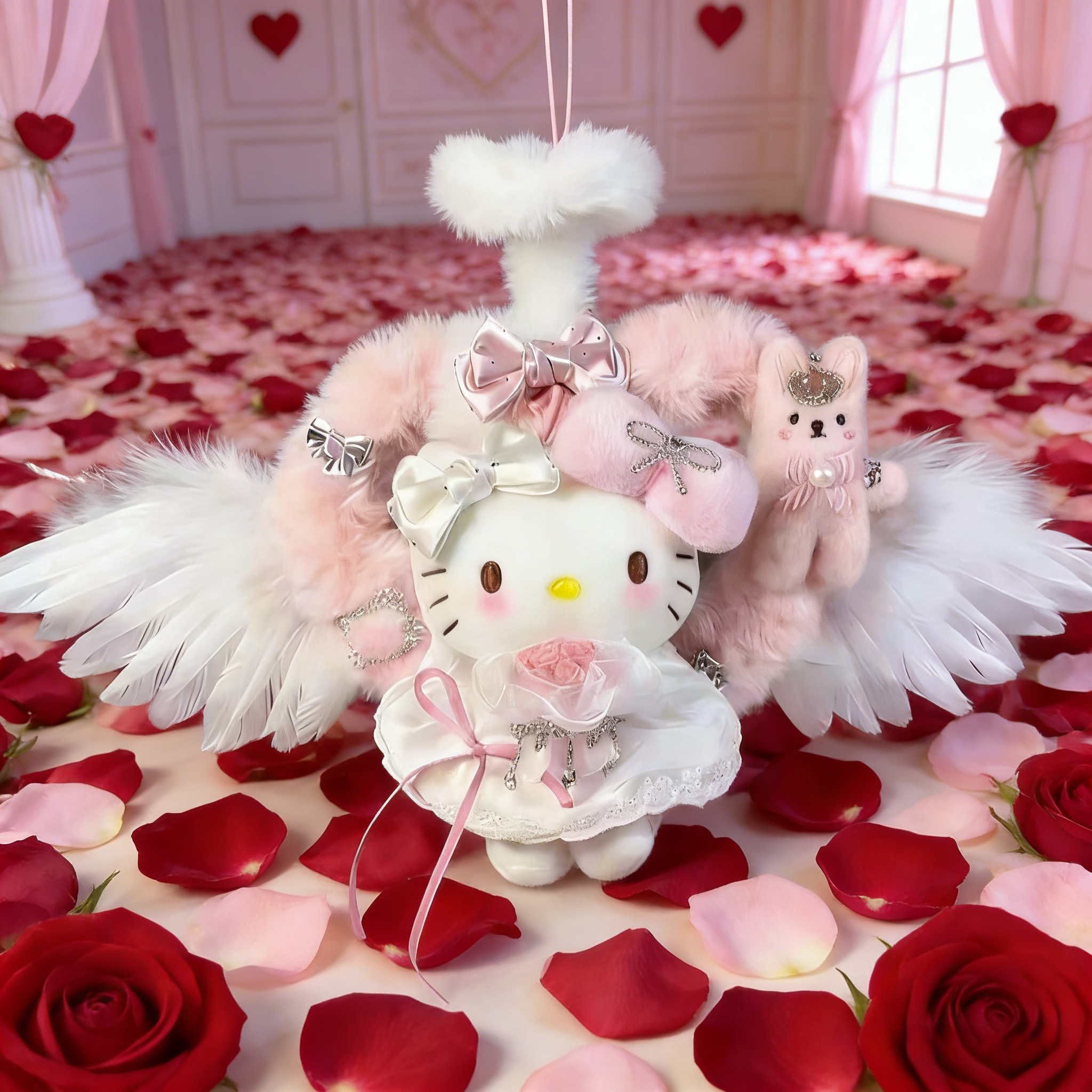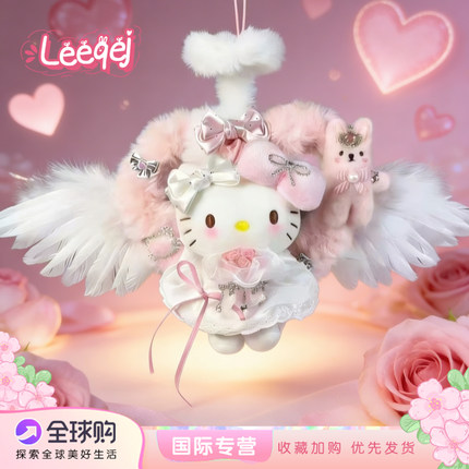 日本LEEQEJ毛绒爱心天使Kitty包包挂件公仔玩偶送情人节女生礼物