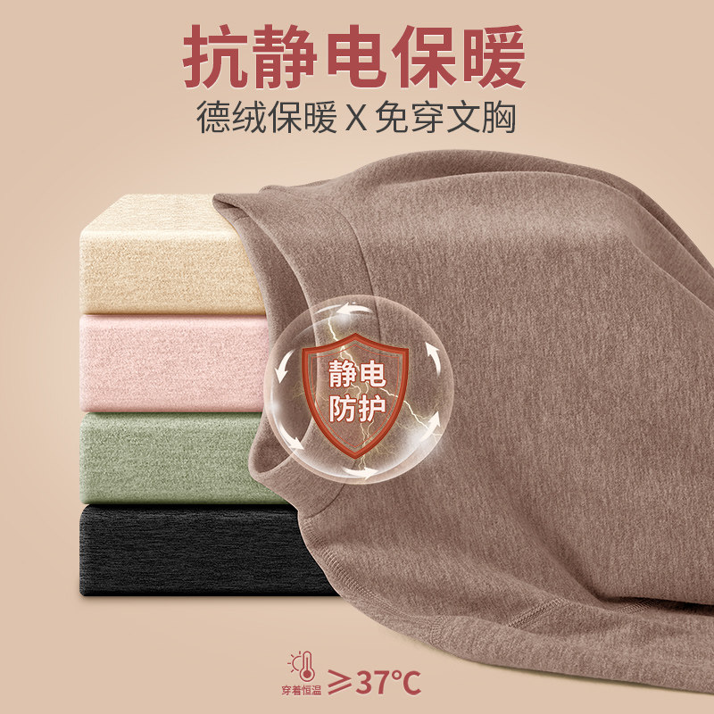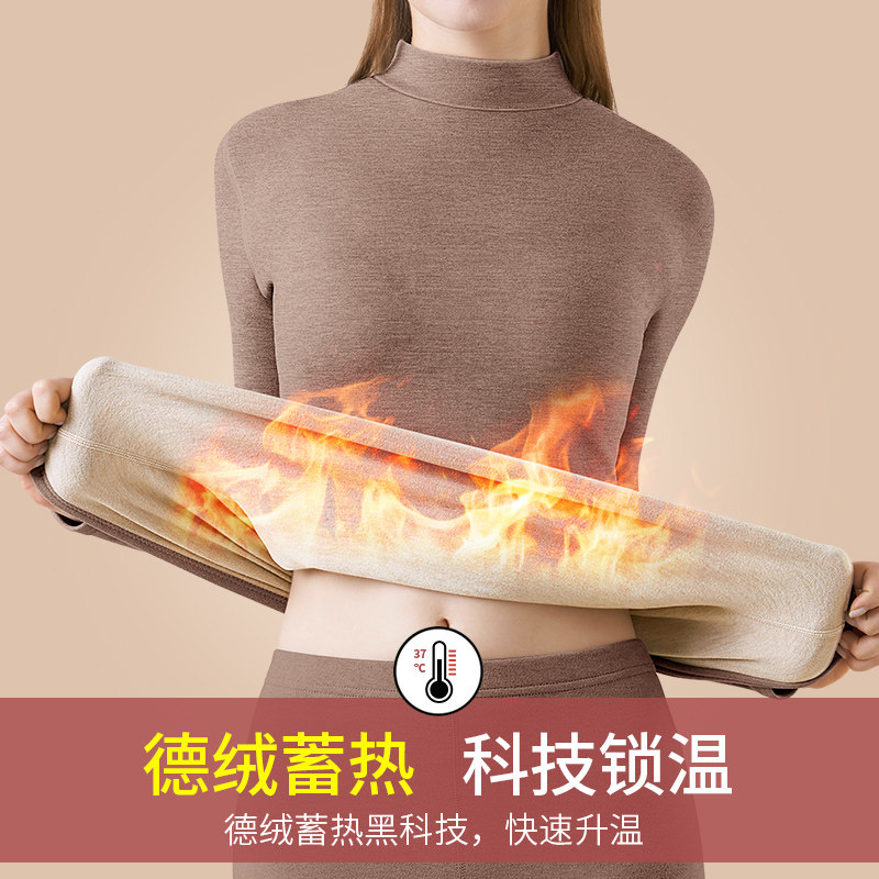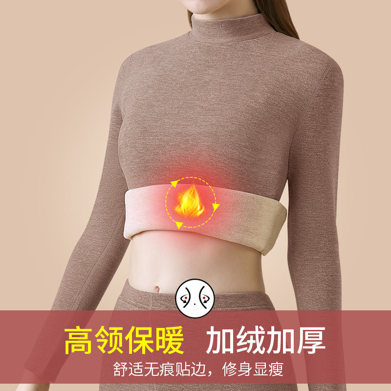 保暖内衣女士羊绒蚕丝德绒高领上衣内搭秋衣打底衫加绒加厚秋冬季