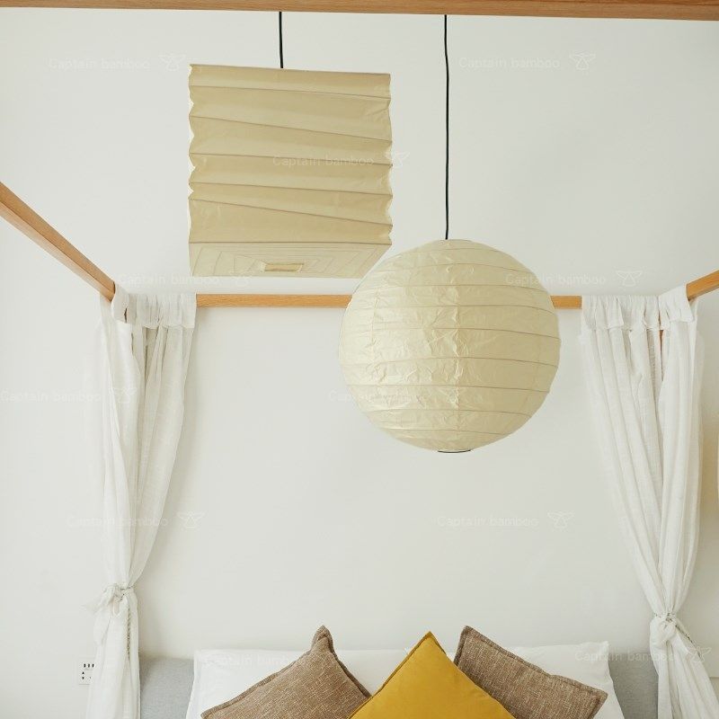 野口勇日式风格纸灯中o古奶油黄卧室书房客餐厅超大圆球形吊灯55D