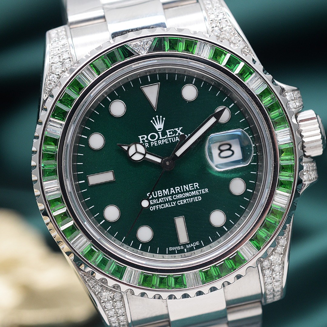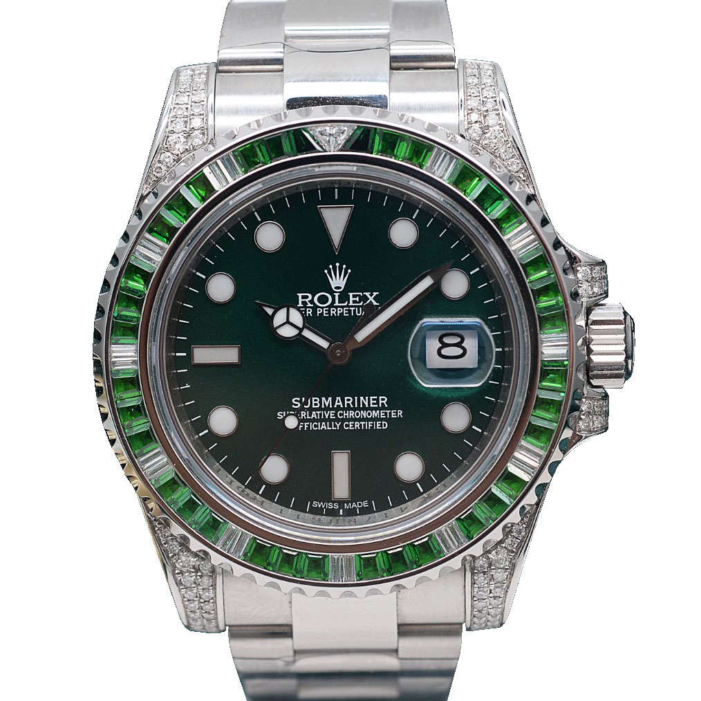 正品[9.8新]劳力士潜航者绿盘116610后镶钻自动机械男表40mm