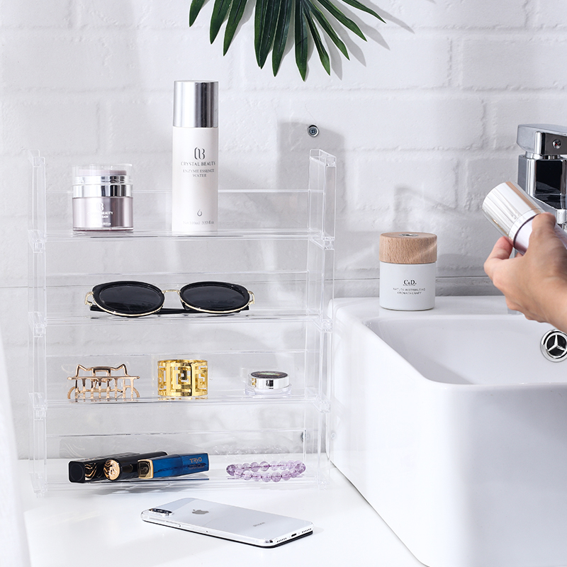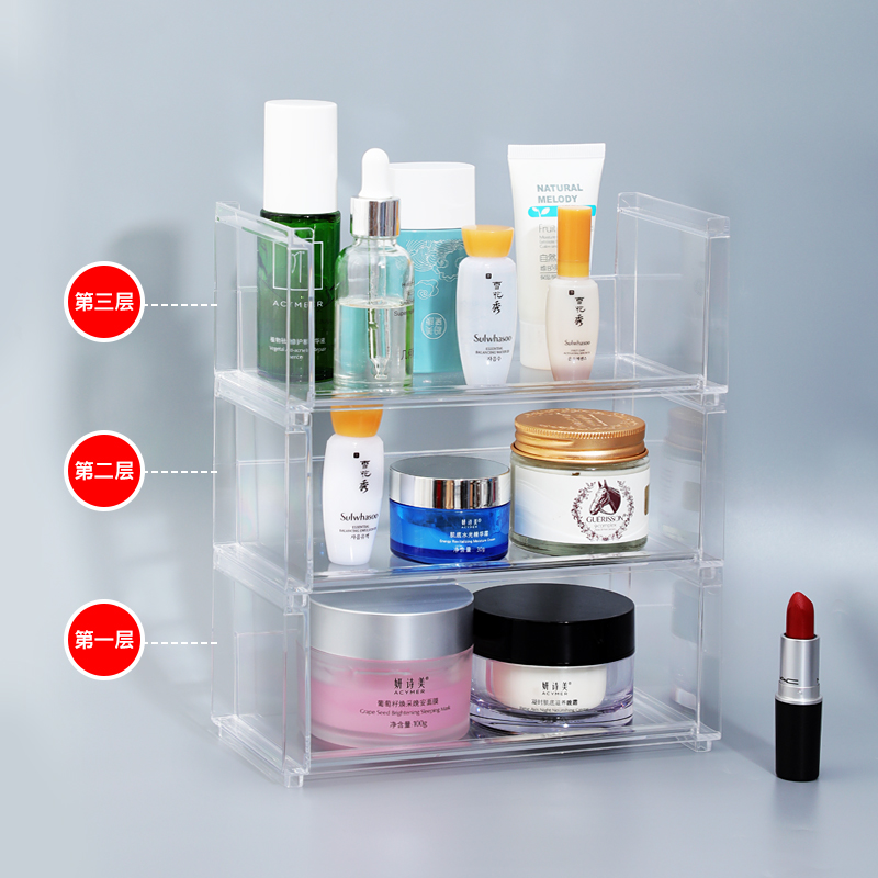 可叠加简约通透明储物架网红化妆品收纳盒桌面护肤品梳妆台置物架
