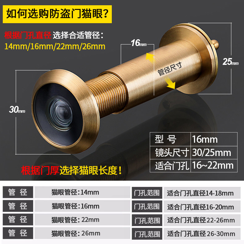 全铜王力防盗门猫眼门镜家用大门入户门防撬老式门上通用高清门眼