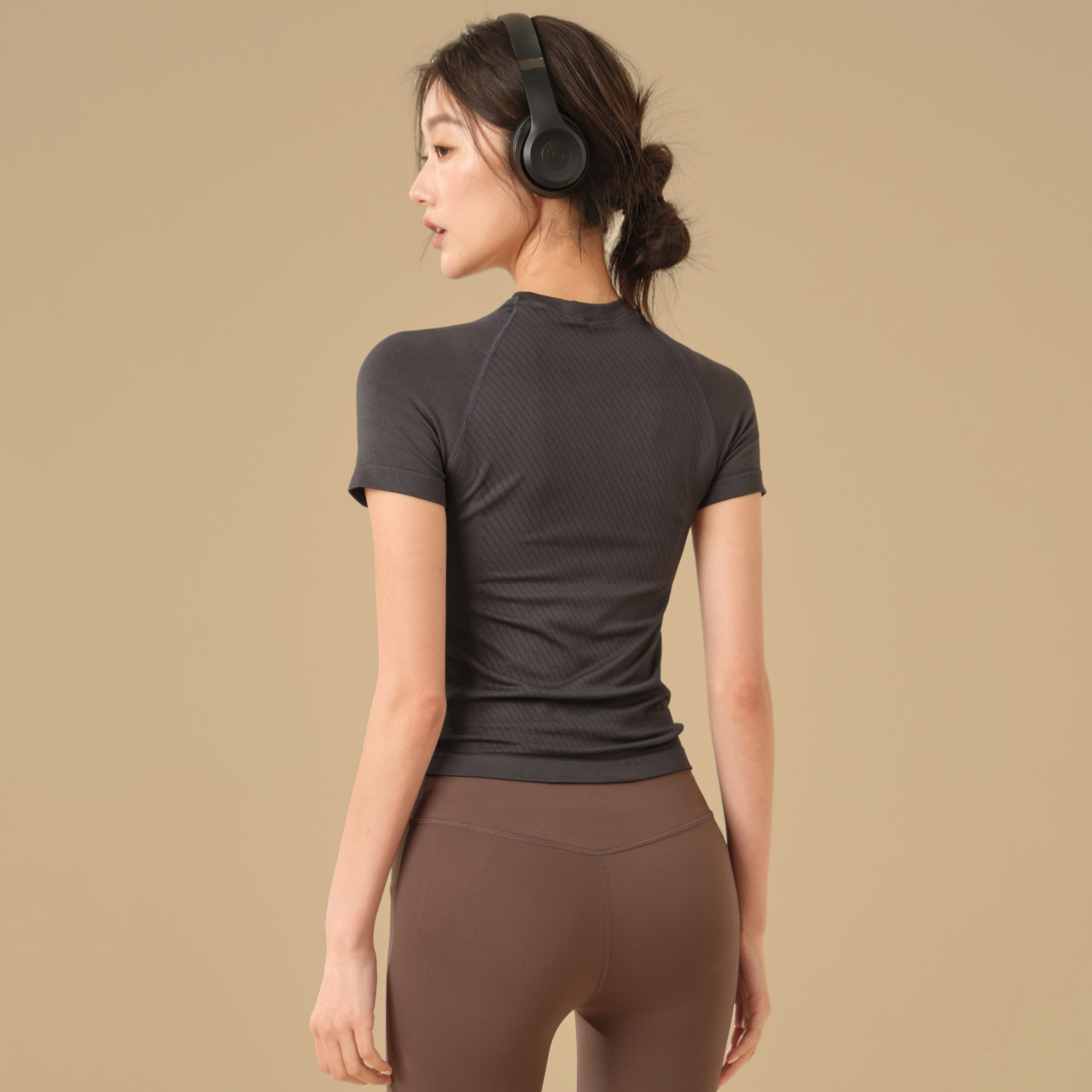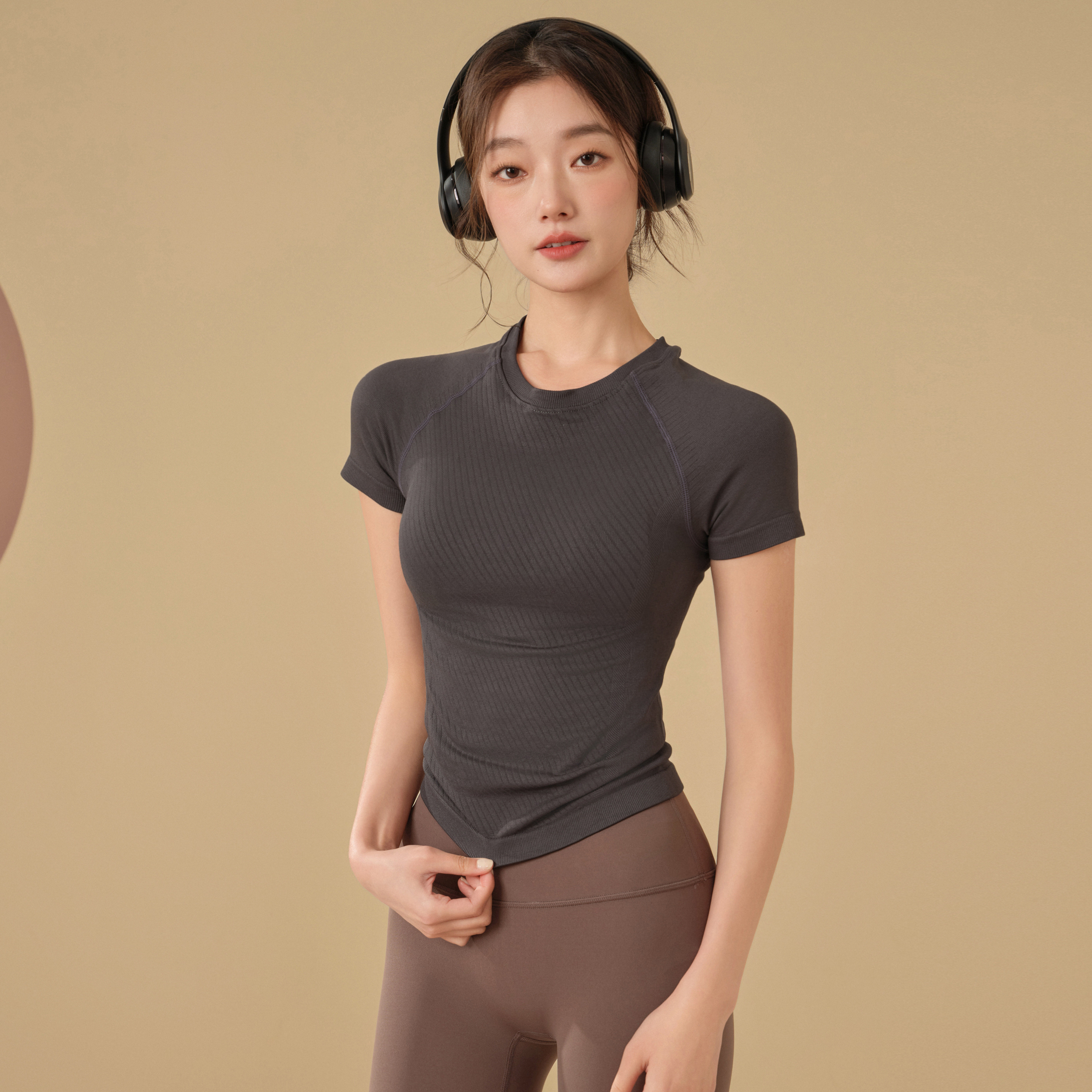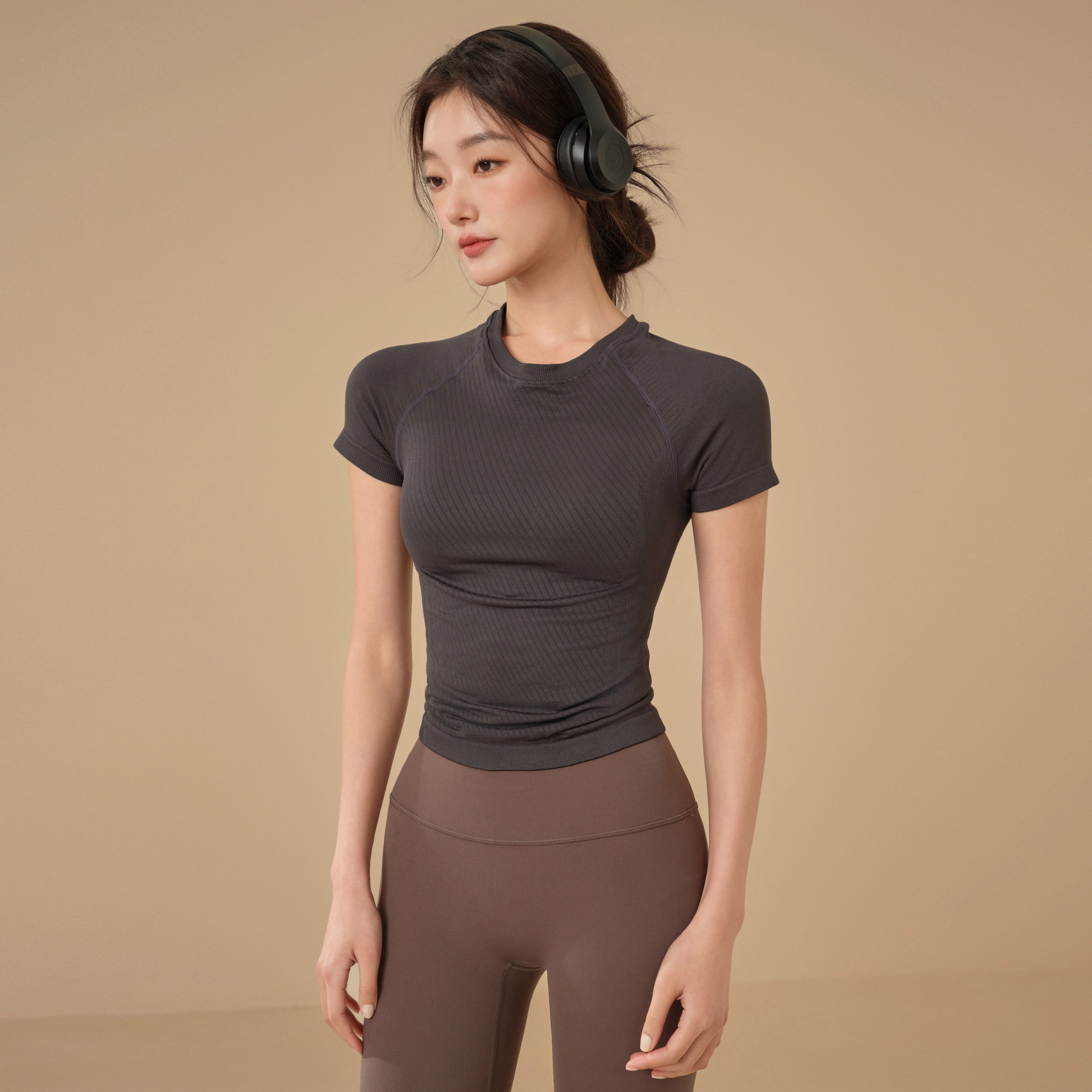 岚纹瑜伽服女短袖紧身衣弹力速干透气运动t恤普拉提健身跑步上衣