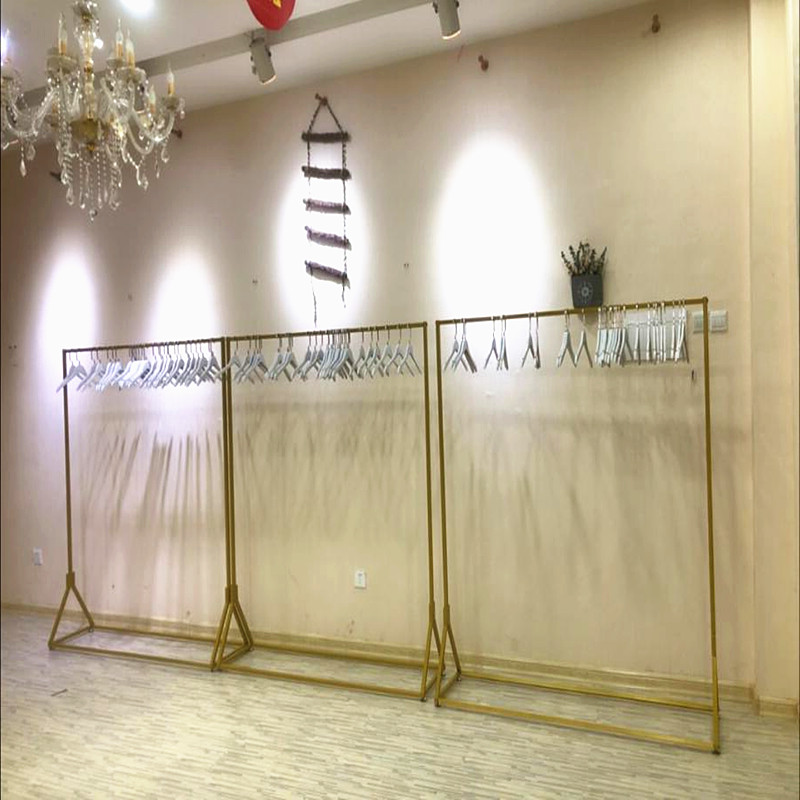 金色铁艺服装架衣服展示架陈列架落地式女装店衣架服装店货架架子