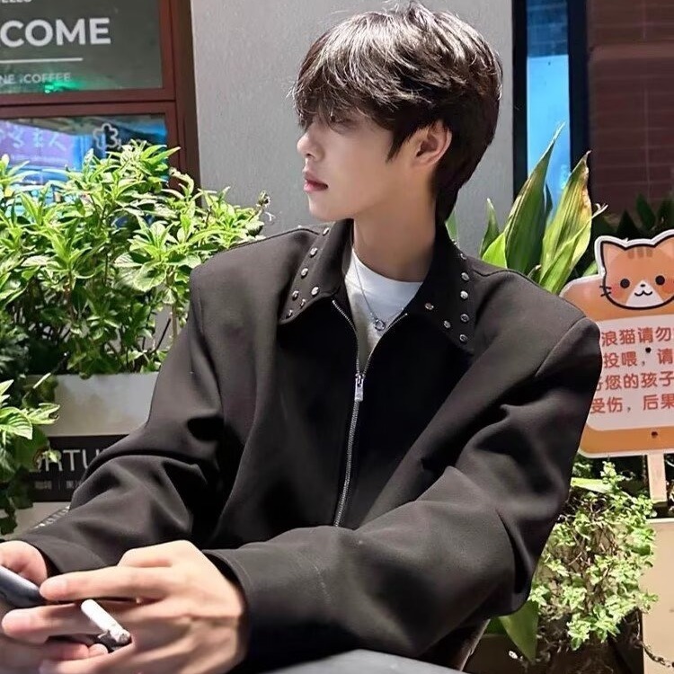 黑色短款垫肩外套男款春秋设计感小众cleanfit高级感美式行政夹克