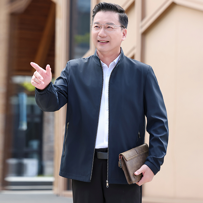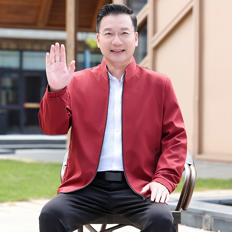 爸爸外套春秋红色高档立领夹克中年男士婚宴装2025新款50岁喜衣服