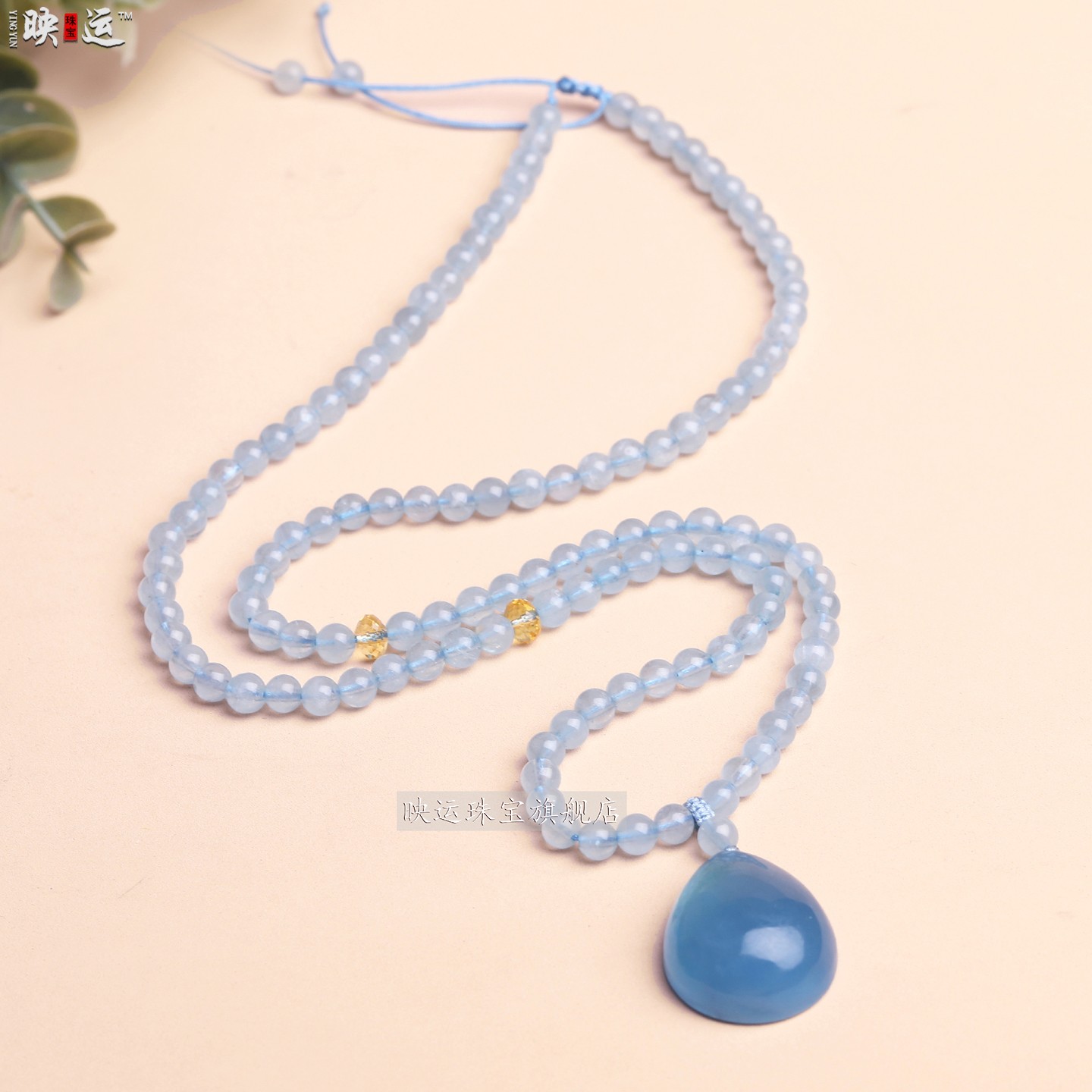 天然海蓝宝水滴吊坠蓝色水晶石五行属水项链挂饰品滴水蓝宝石礼物