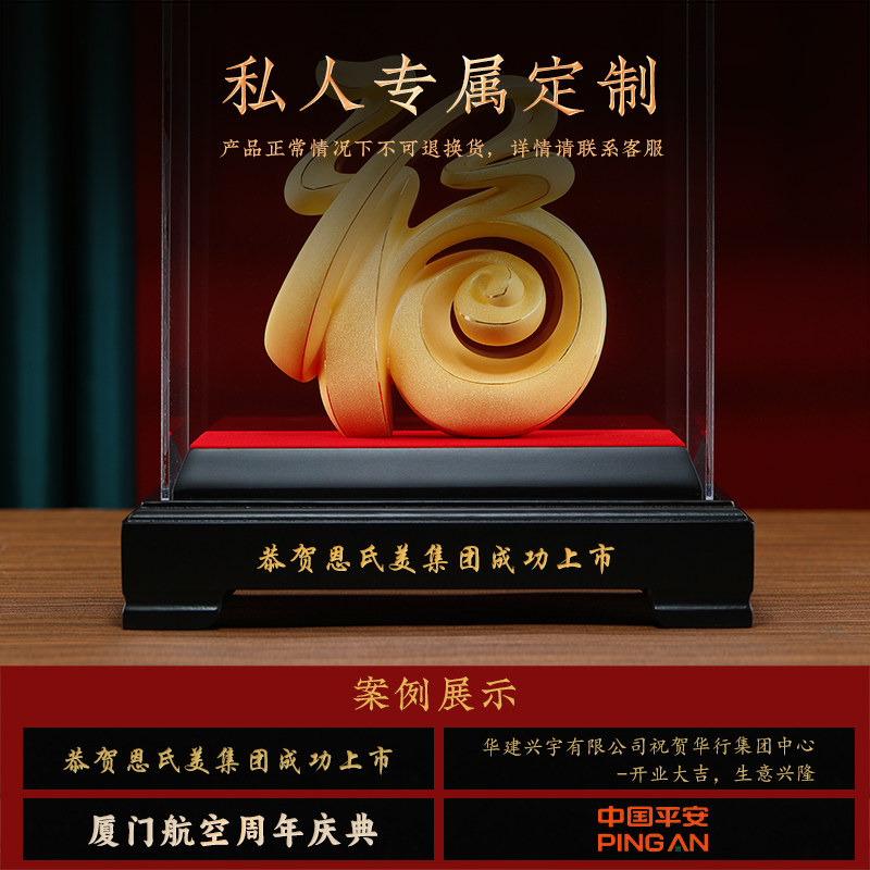 大明铜匠绒沙金福字摆件客厅家居饰品玄关装饰品搬家礼物乔迁新居