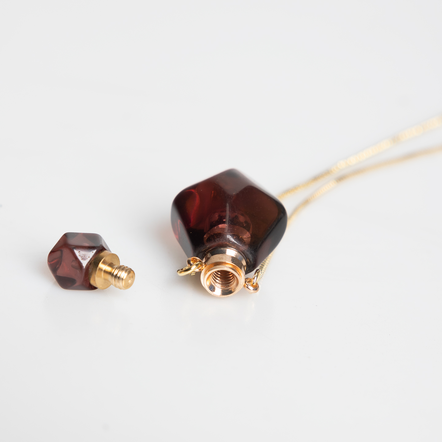 香薰空瓶半宝石绿东陵水晶火焰形香水瓶香薰精油瓶子吊坠项链欧美