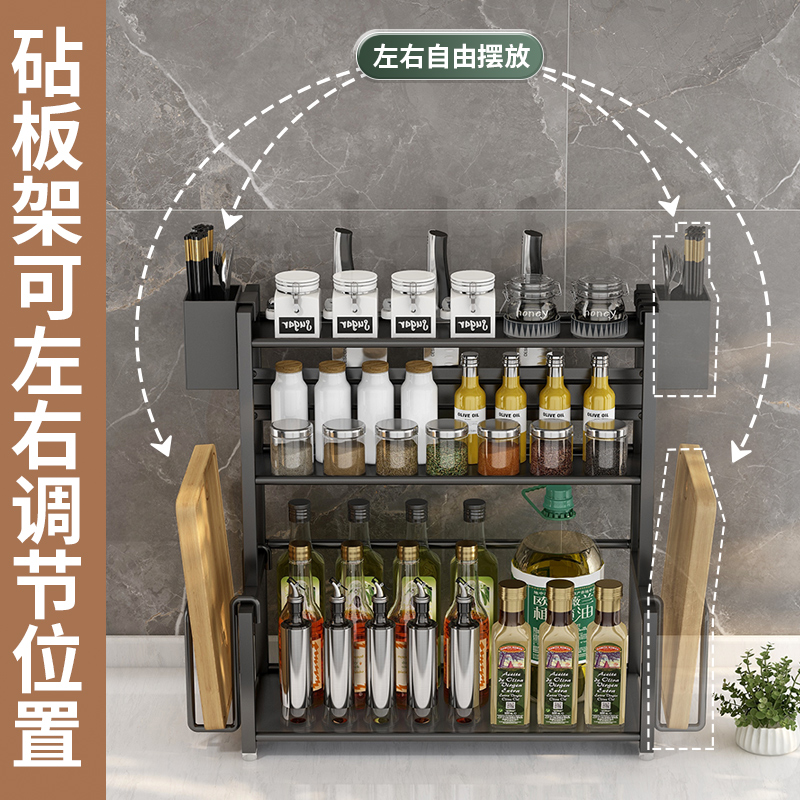 厨房置物架台面多功能调料架家用砧板锅盖刀架盐调味罐多层收纳架