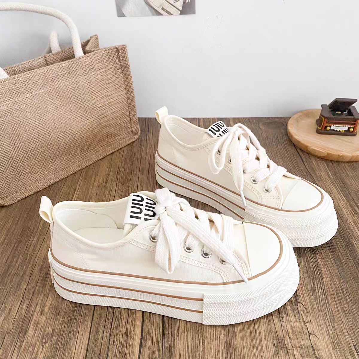 专柜厚底增高学生透气帆布鞋女2025秋冬新款松糕底休闲百搭小白鞋