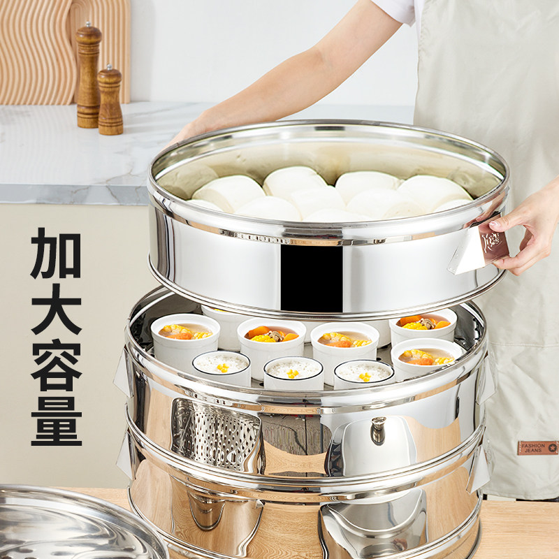 不锈钢蒸笼屉大锅蒸笼家用加高大号蒸包笼商用蒸格多三层蒸锅蒸屉