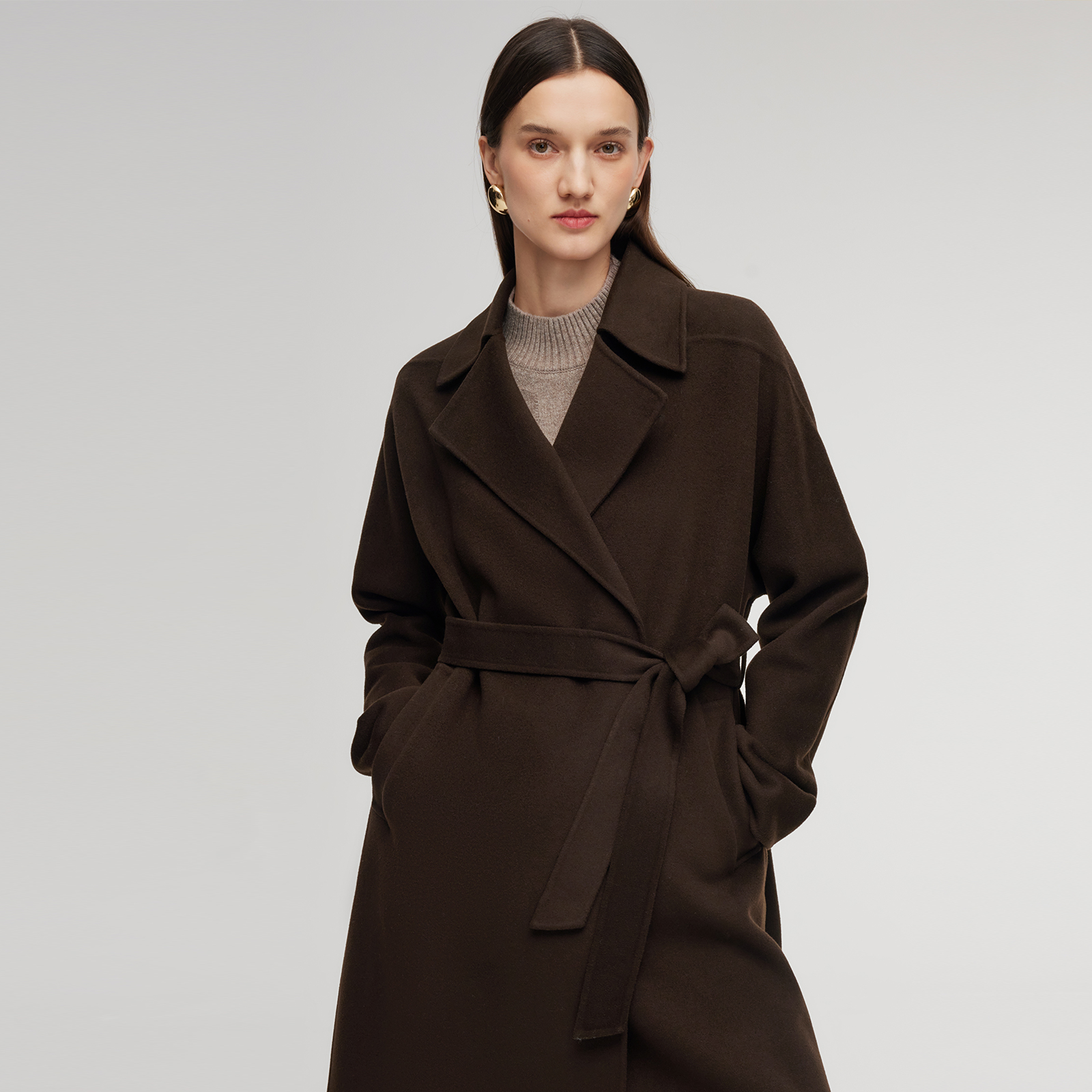 歌莉娅全羊毛大衣女款2025新款冬季淡人高知穿搭连袖长款毛呢外套