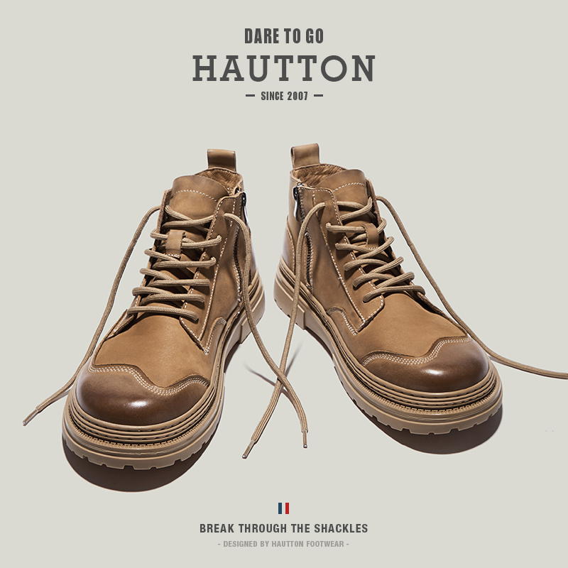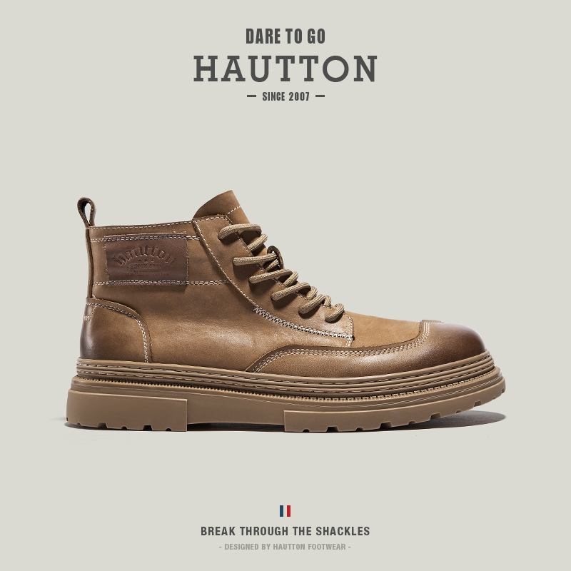 HauttonJeans增高马丁靴男款2025秋季男士高帮大黄靴工装鞋男靴