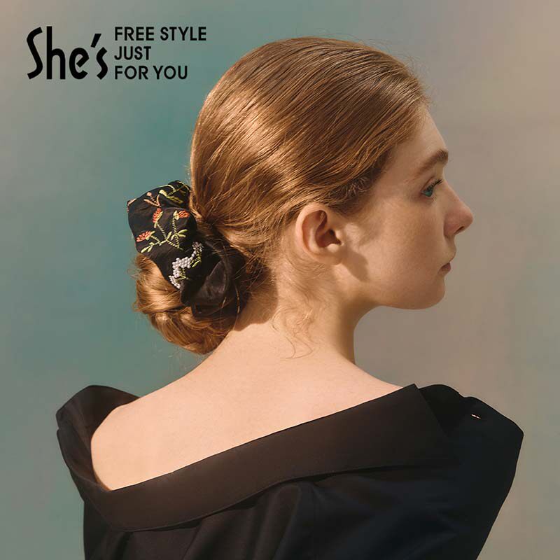 shes茜子自然复刻原创国风刺绣花卉大肠盘发发圈发箍发夹头饰