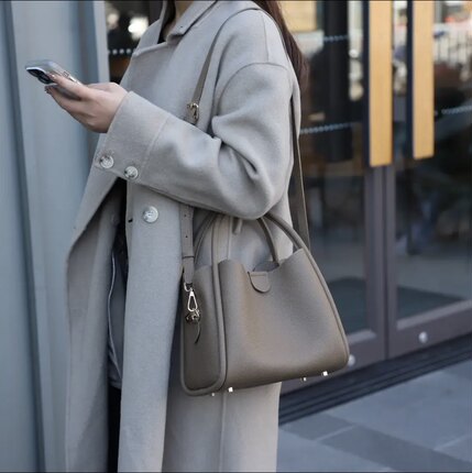 爆款真皮手提水桶包2025新款高级感百搭牛皮单肩包简约女士斜挎包