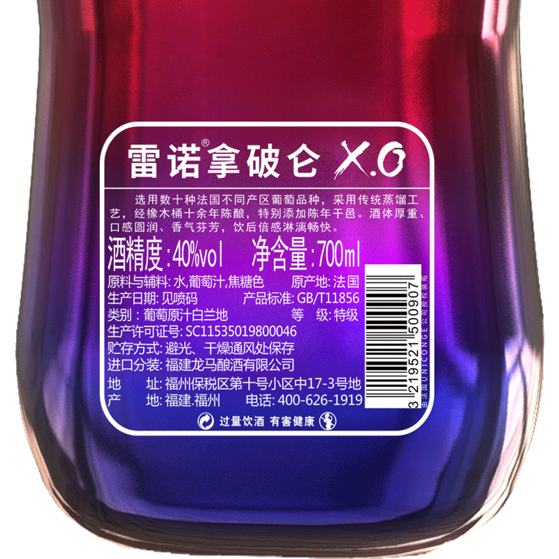 雷诺(RENOWN)拿破仑白兰地XO炫彩版 700ml礼盒装洋酒原液进口