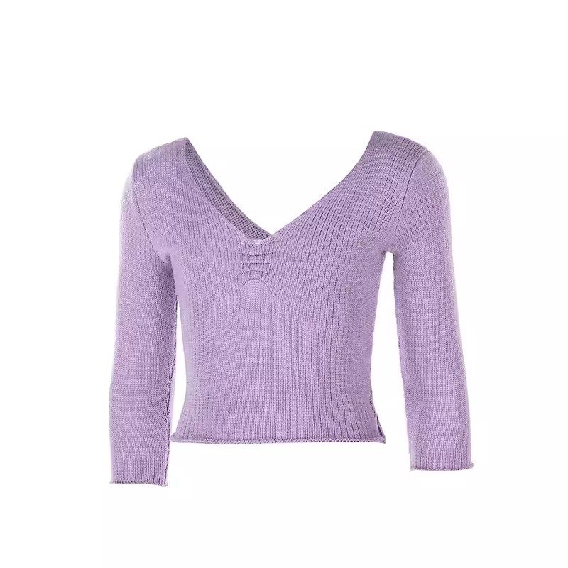 Sansha三沙儿童舞蹈服 冬季V领针织衫 七分袖保暖芭蕾舞套头毛衣