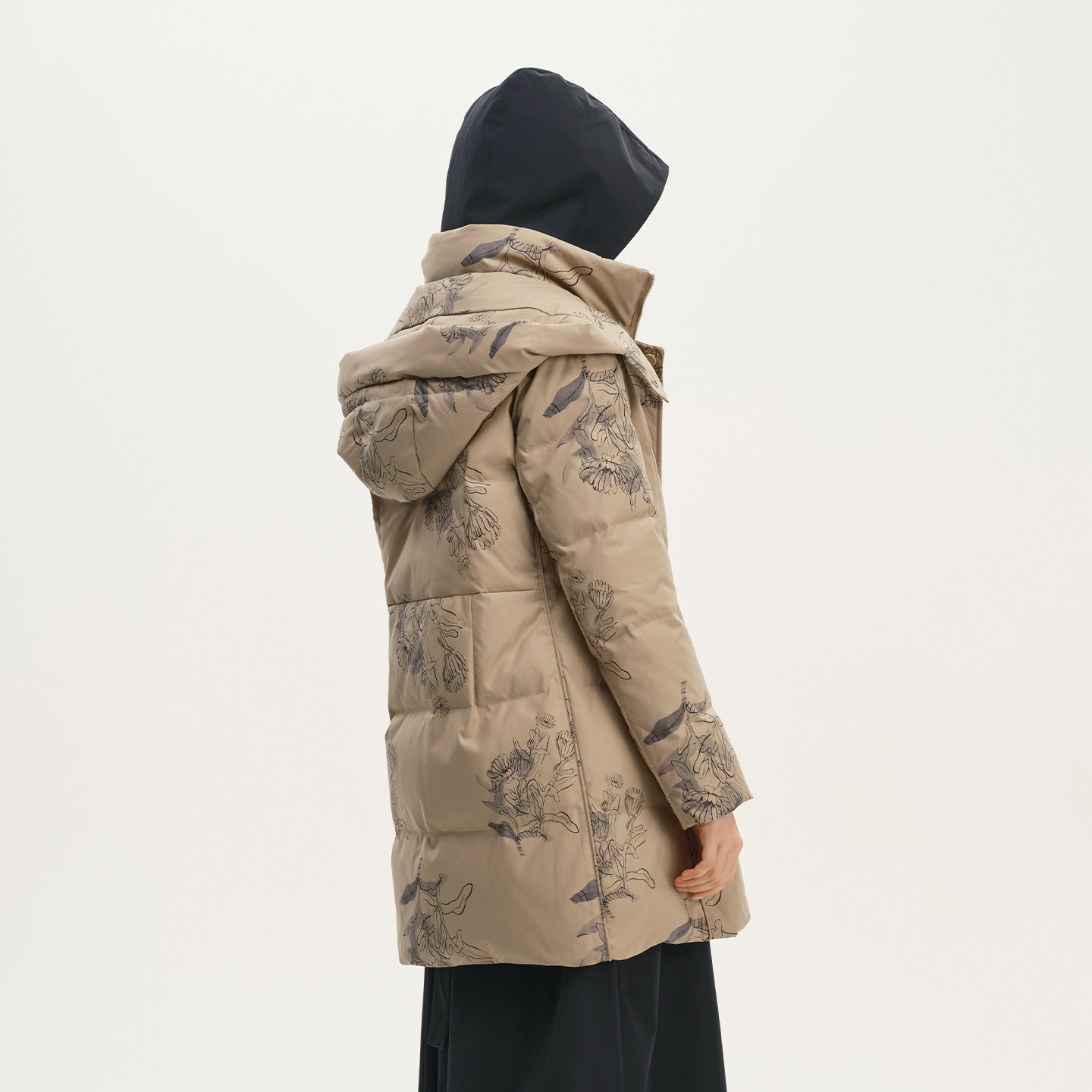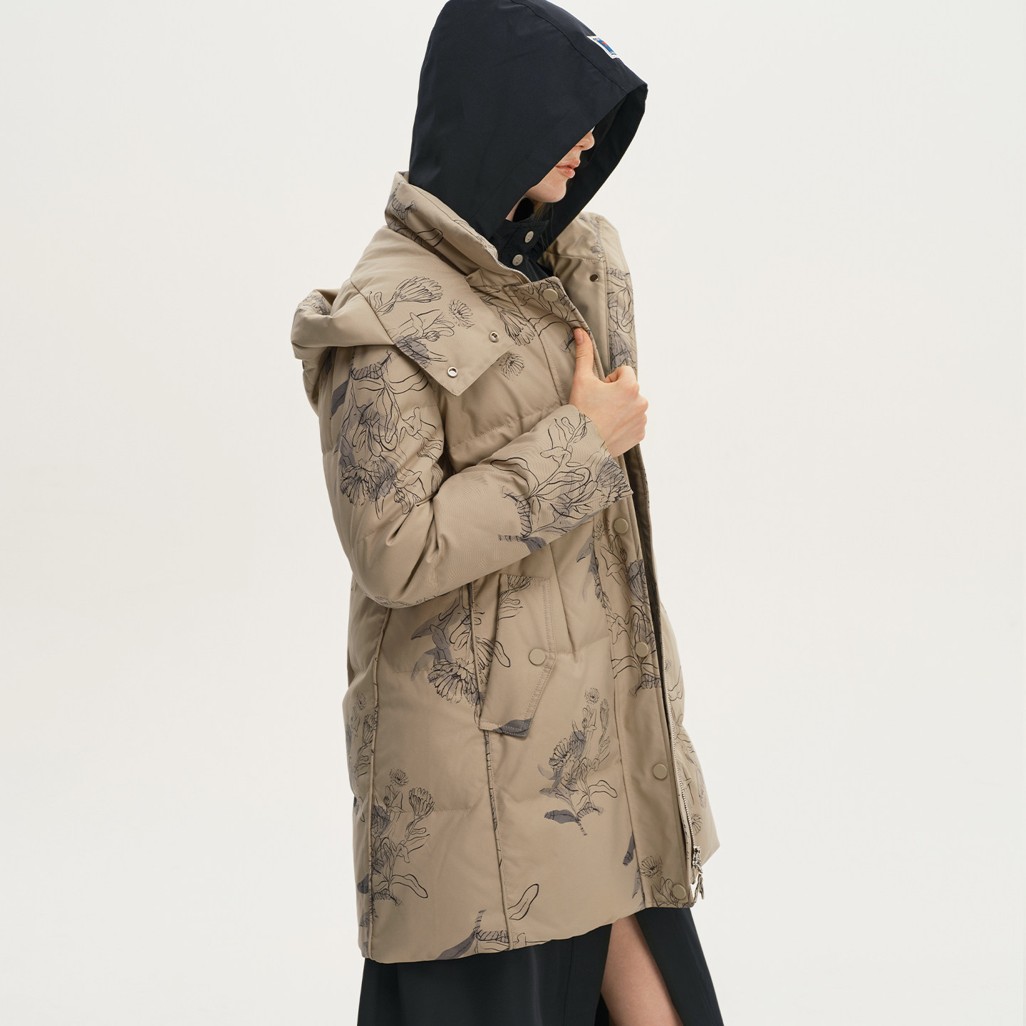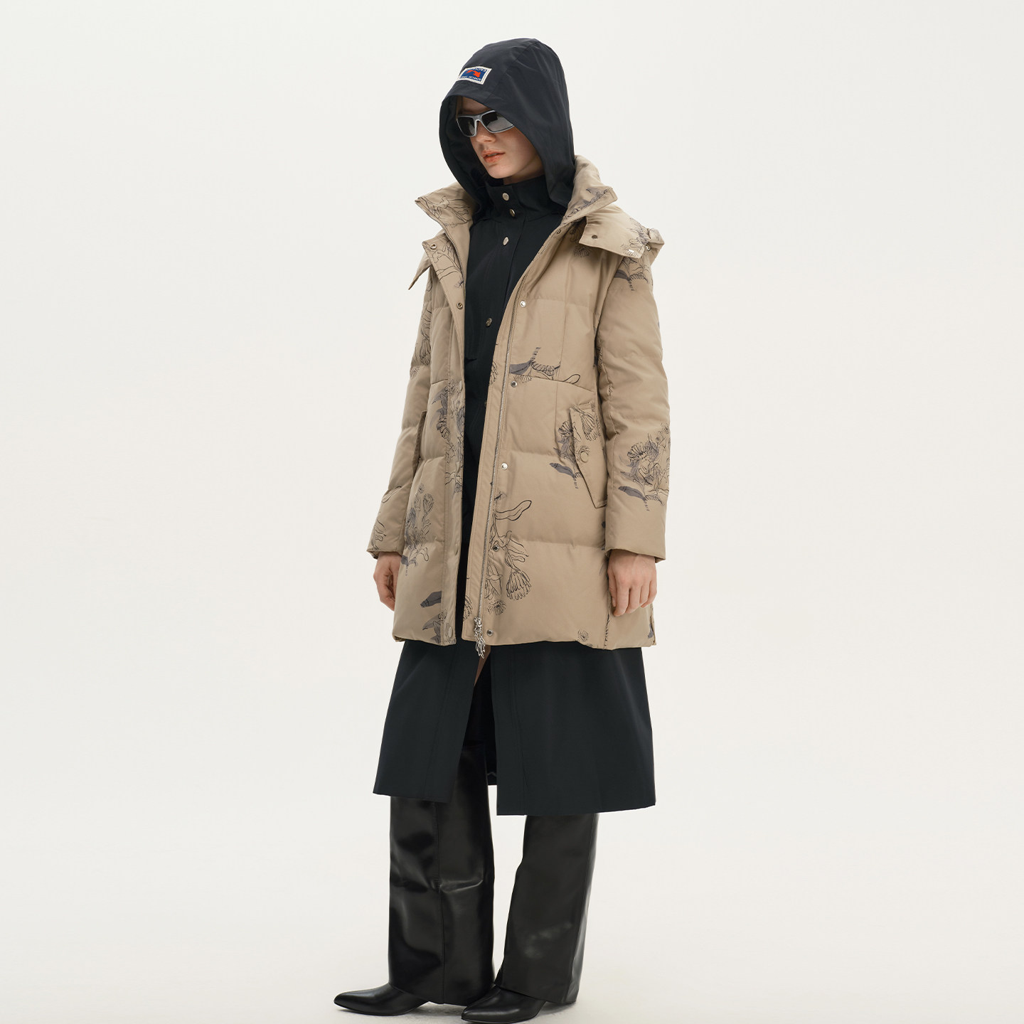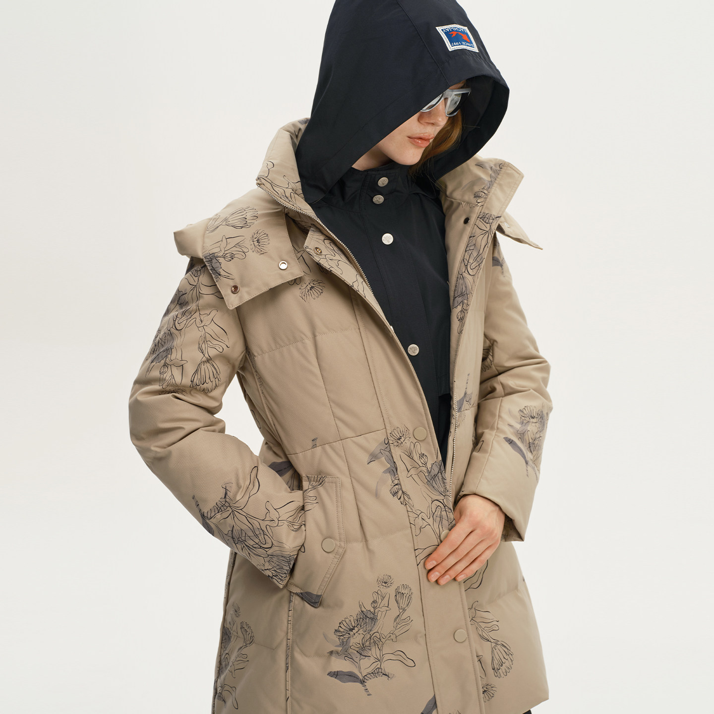 艺之卉乡野复古风水墨菡萏优雅文艺印花中长款连帽羽绒服25冬新款