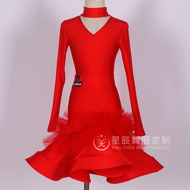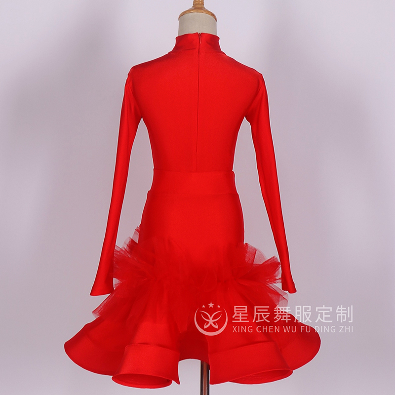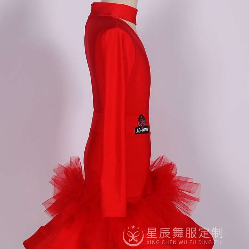 星辰舞服女童拉丁裙演出服红色花边网纱裙摆同款赛场舞台吸睛