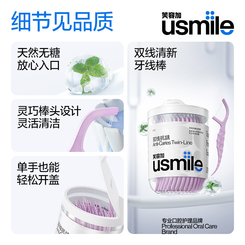 笑容加usmile成人牙线双线牙线棒