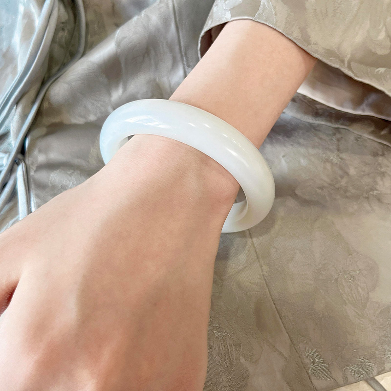"雪覆千山"和田玉羊脂白玉平替冰种飘花正品阿富汗玉手镯子真玉石