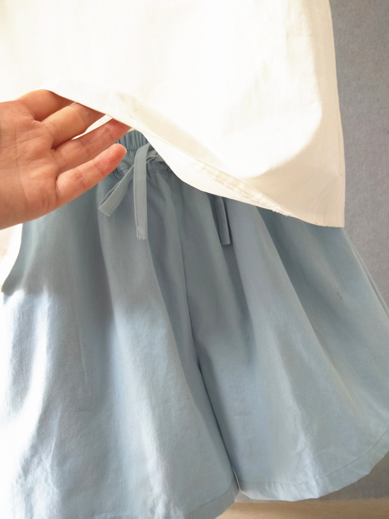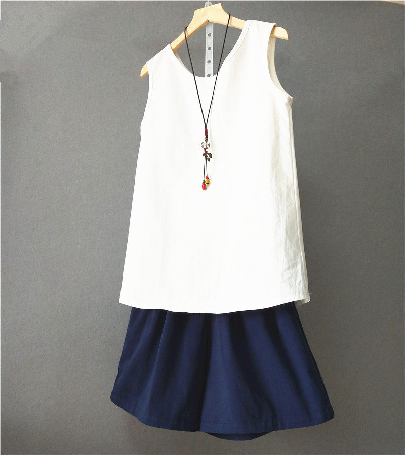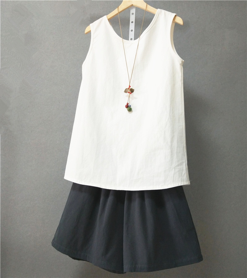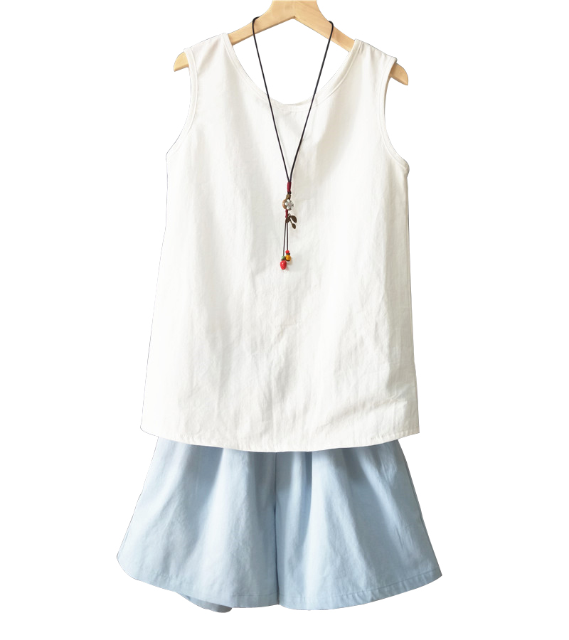 自制 2024棉麻休闲套装女夏穿搭宽松无袖背心T恤两件套阔腿短裤子