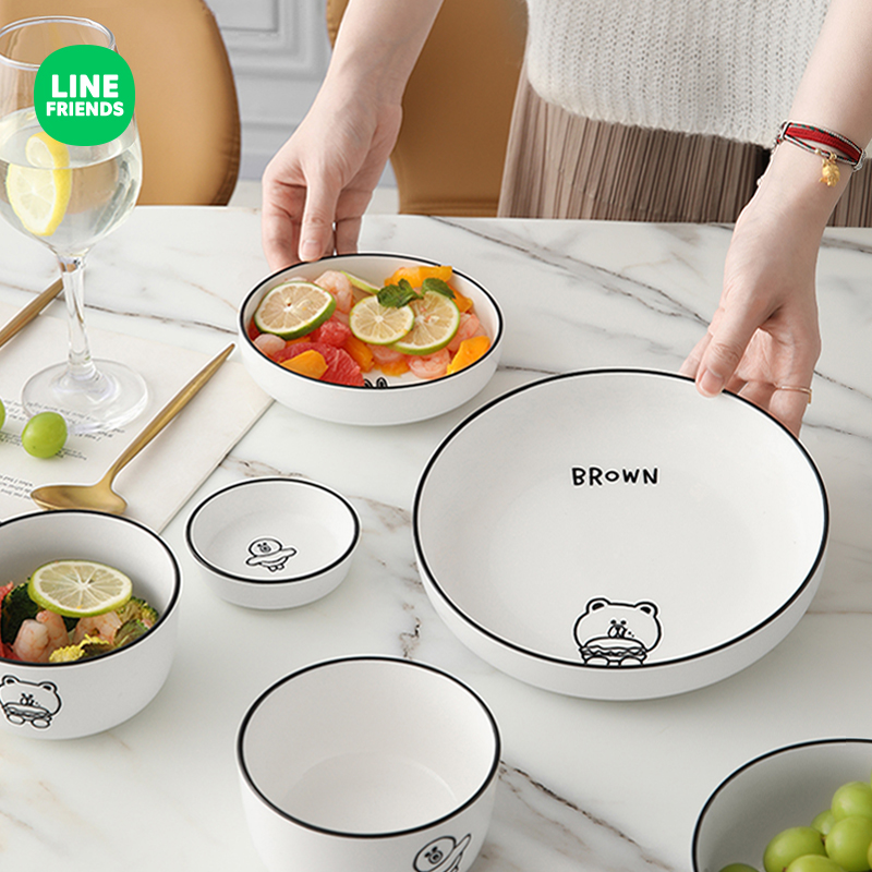LINE FRIENDS卡通餐具陶瓷饭碗单个碗菜盘子吐骨碟家用碗碟套装