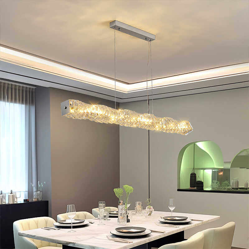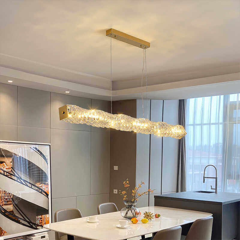 餐厅灯轻奢水晶吊灯简约吧台灯后现代高档奢华家用餐桌长条饭厅灯