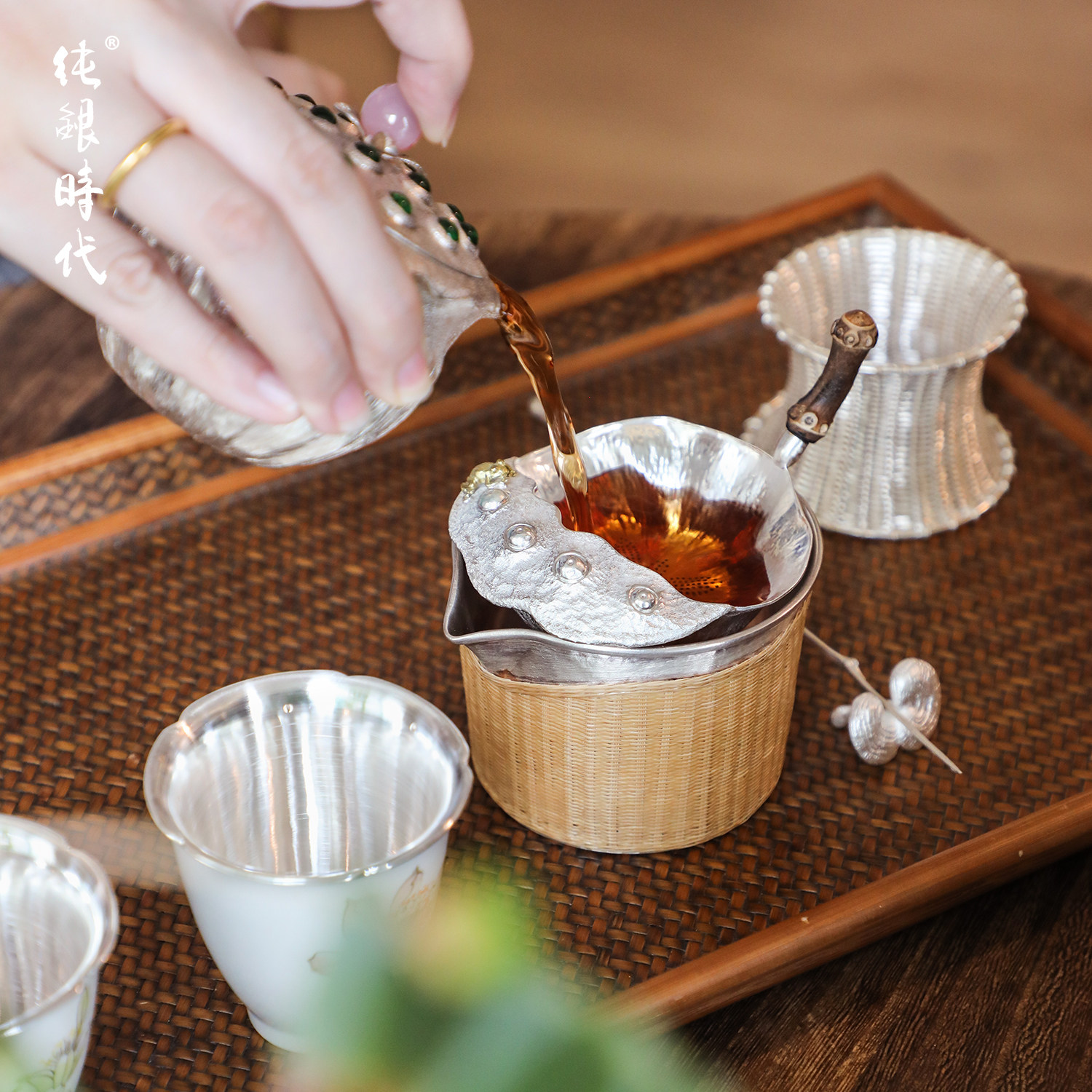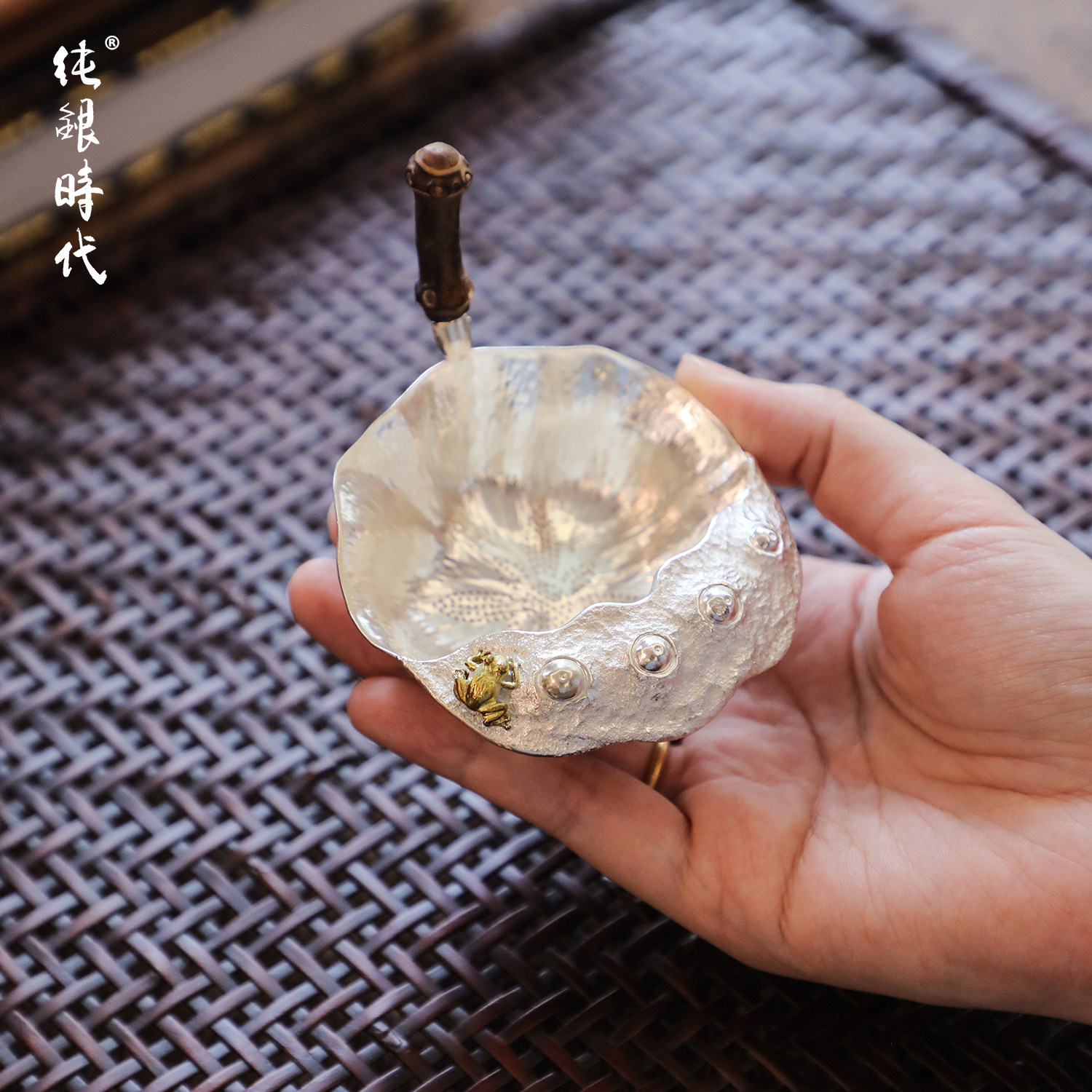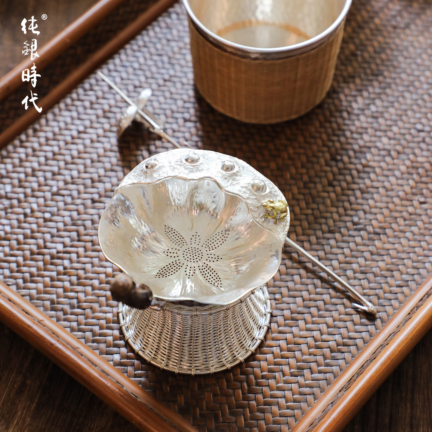 纯银时代 莲蓬纯银茶滤茶漏足银999纯手工过滤器茶道零配文创独特