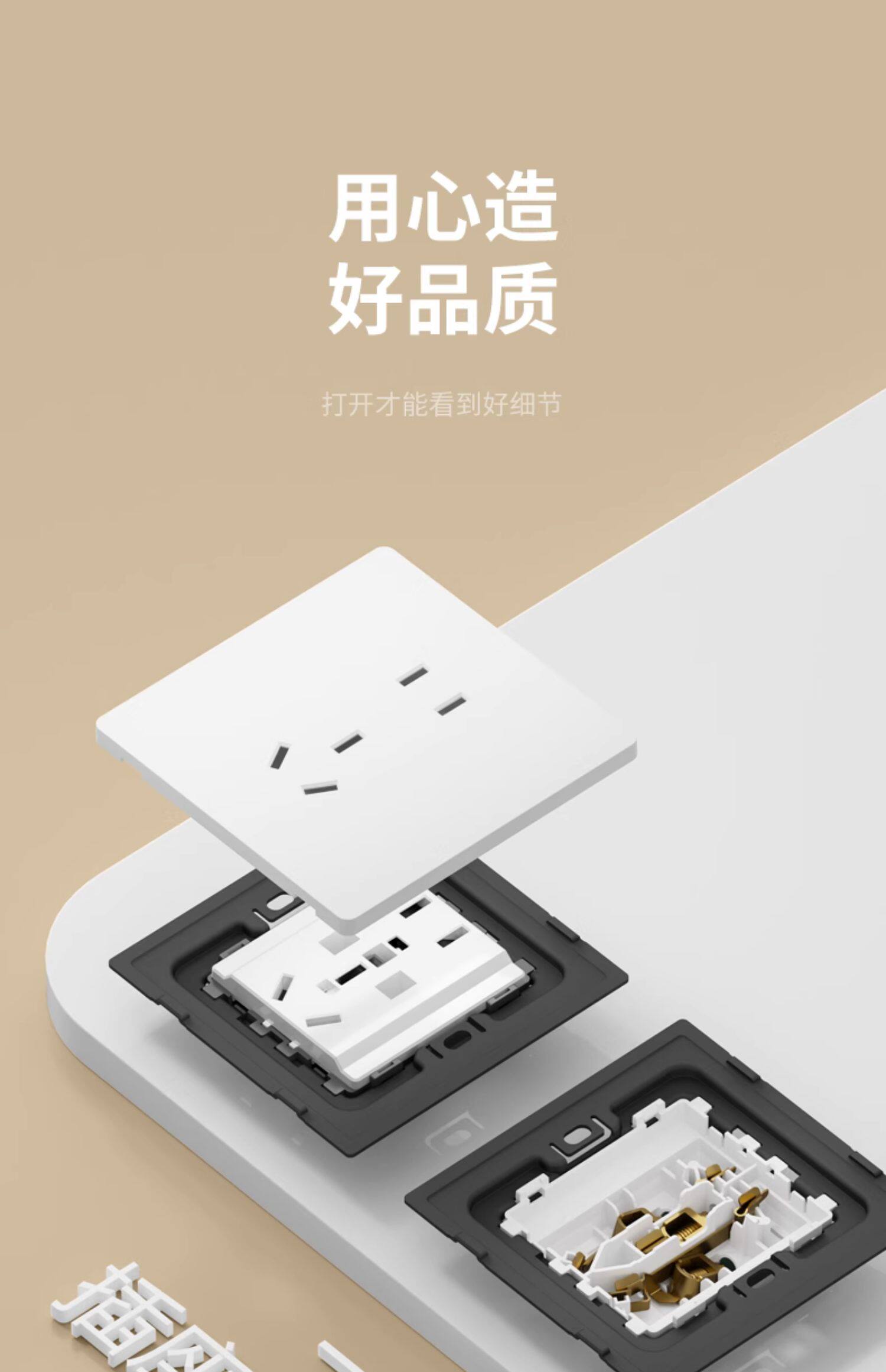 AOPU奥普超薄哑光开关插座面板H32系列大板白色一开双控五孔插座