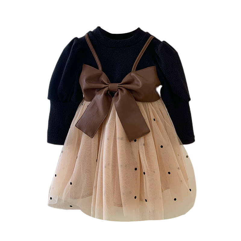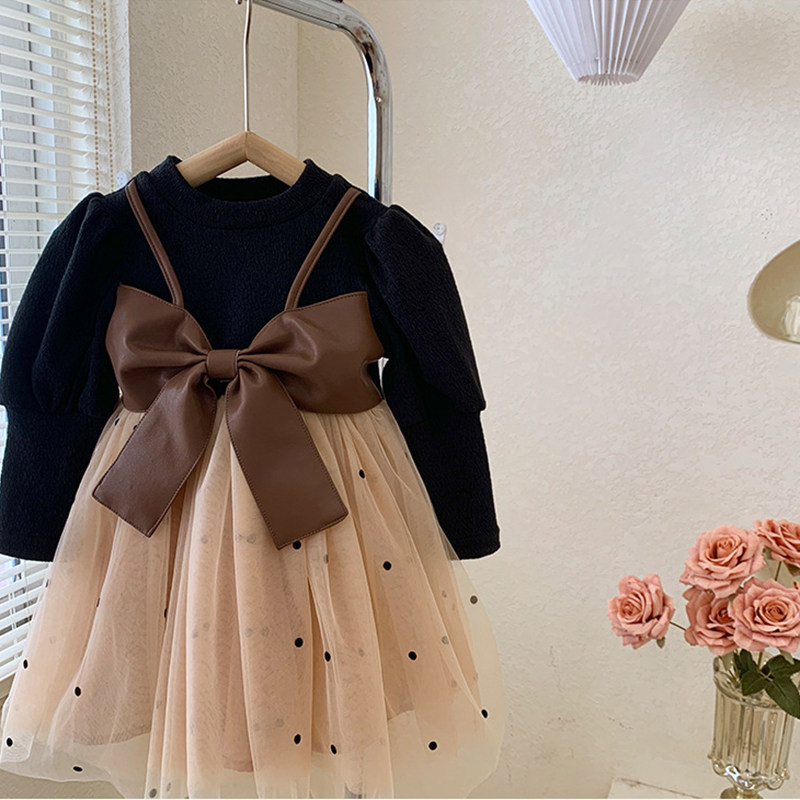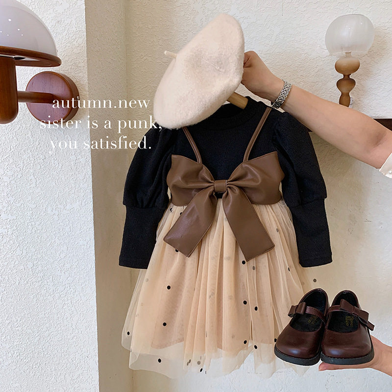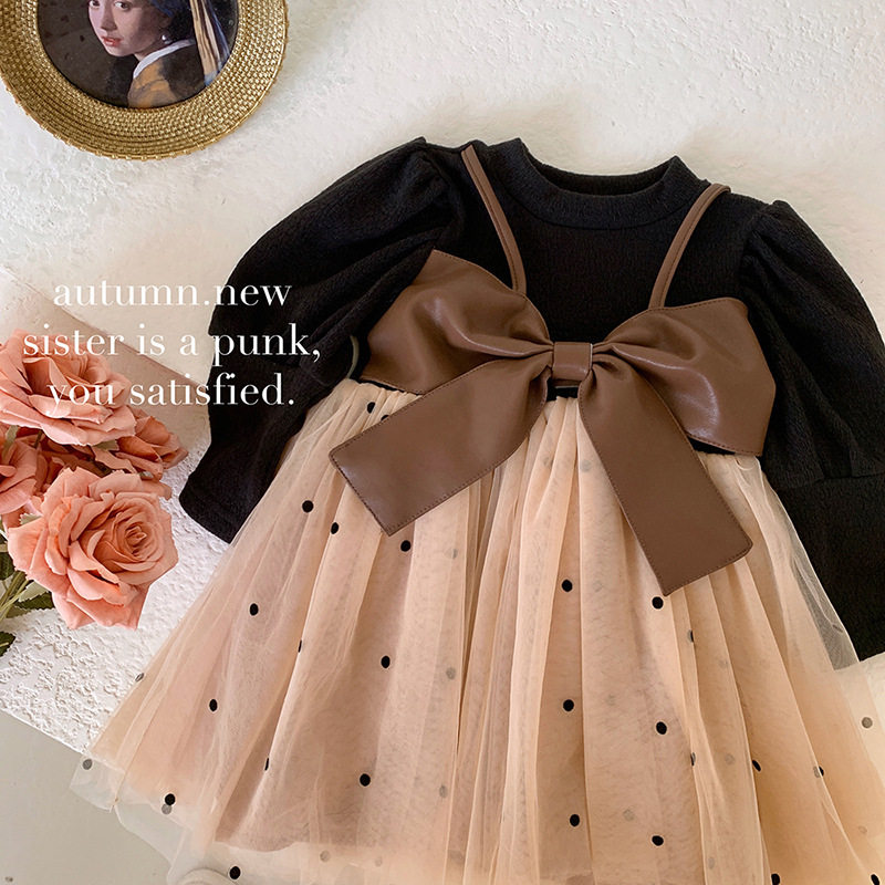 韩国童装女童连衣裙春秋新款儿童长袖加绒假两件洋气时髦公主裙子