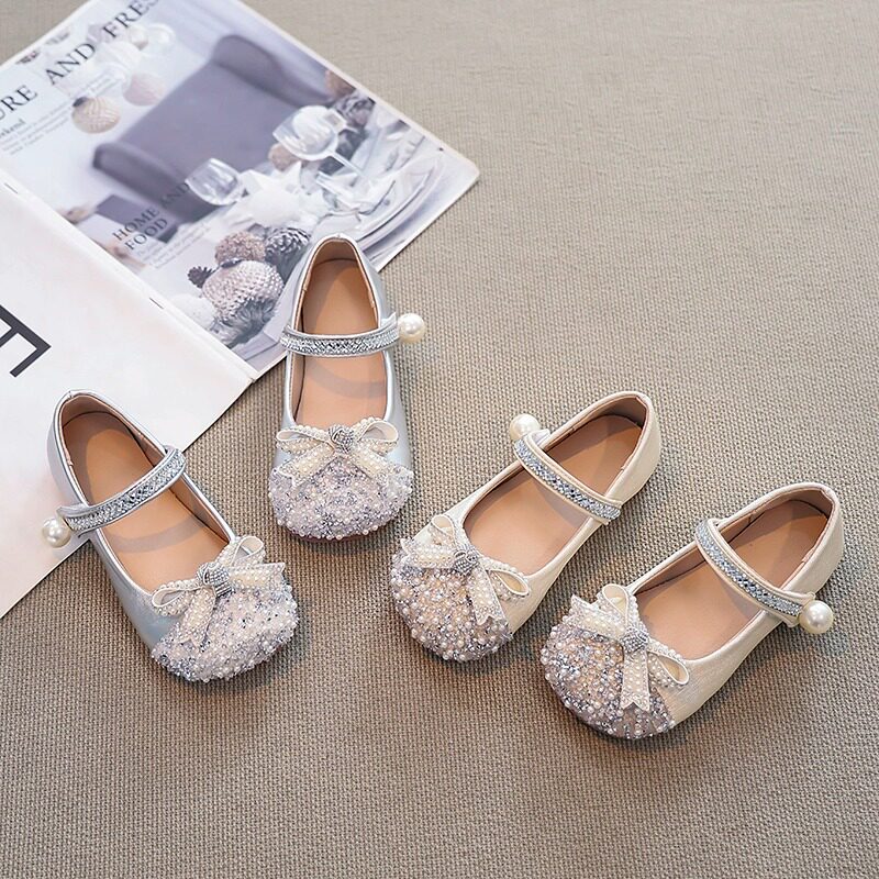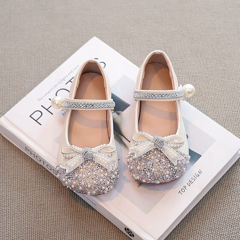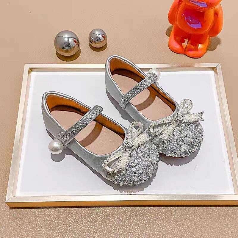 真皮女童水晶鞋2025春秋新款儿童公主鞋洋气小女孩单鞋软底小皮鞋