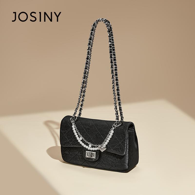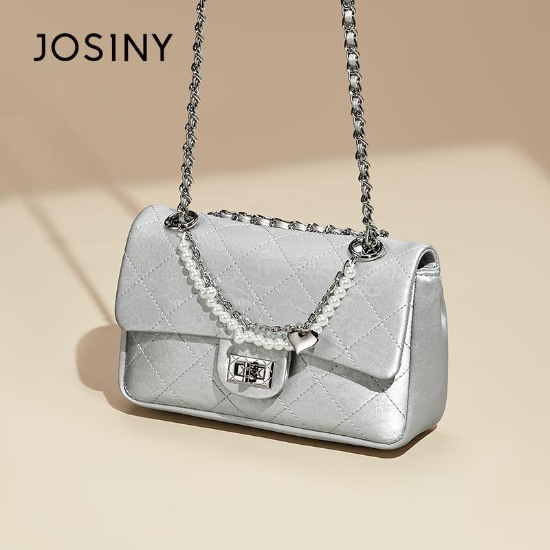 Josiny/卓诗尼小方包包女新款斜挎包质感菱格包百搭通勤包链条包