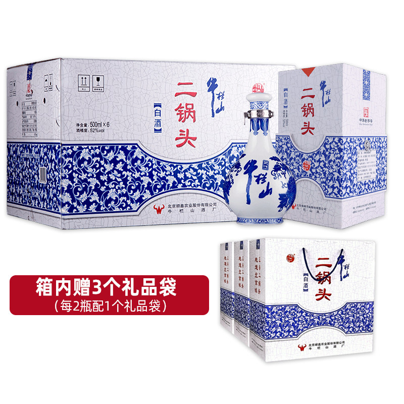 牛栏山二锅头52度青花瓷清香型500毫升*6瓶整箱装白酒礼盒装正品