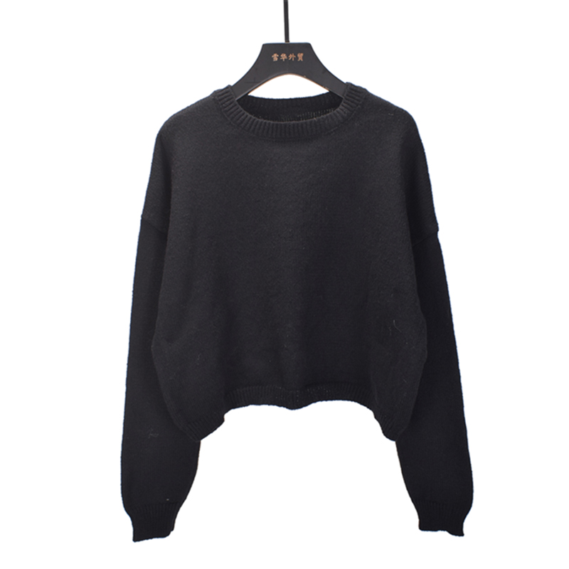 针织套头圆领宽松内搭长袖上衣女