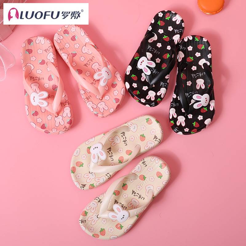 罗敷儿童凉鞋兔子卡通人字拖鞋童女童夏外出舒服防滑沙滩鞋