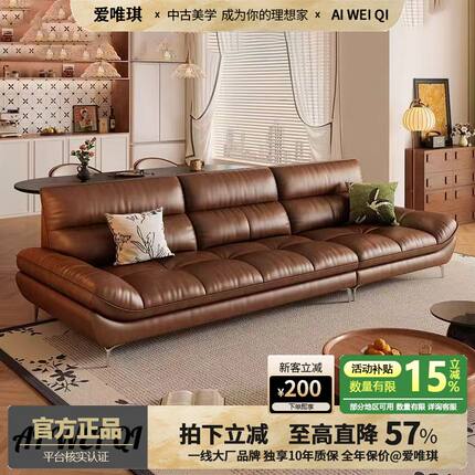 爱唯琪中古风帆船沙发大小户型客厅家用油蜡真皮复古直排皮艺沙发