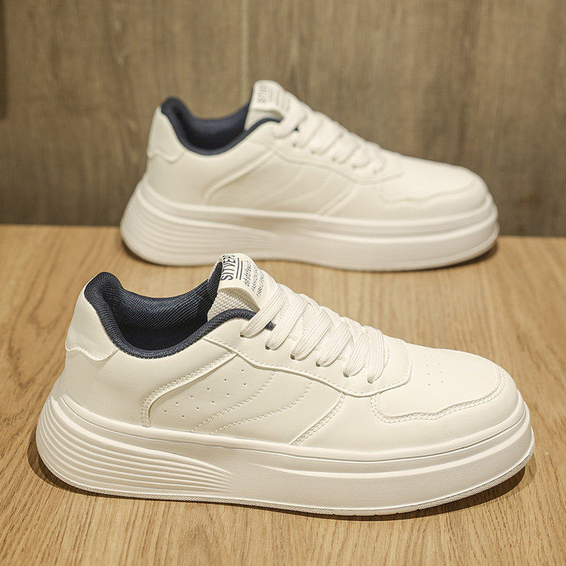 热风新男鞋2026新款春季韩版百搭小众工作小白板鞋运动厚底增高休