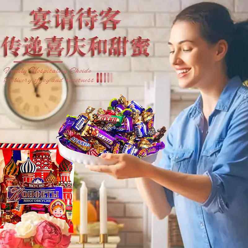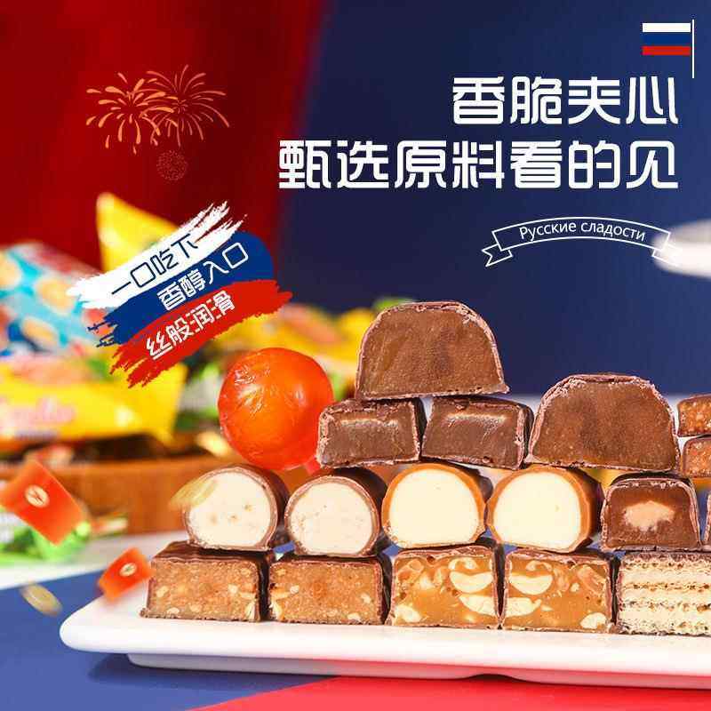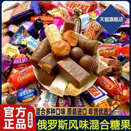 俄罗斯风味糖果混合巧克力花生紫皮牛轧糖喜糖零食大礼包过年年货
