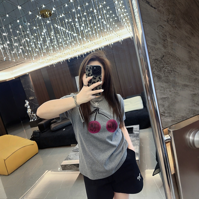抽象樱桃 大码女装显瘦春夏装新款胖mm短袖宽松半袖t恤上衣打底