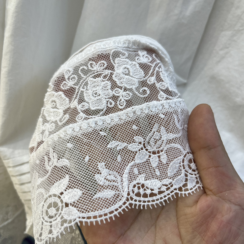 韩系重工棉质蕾丝拼接白色半身裙女松紧腰绣花压褶A字裙大摆伞裙