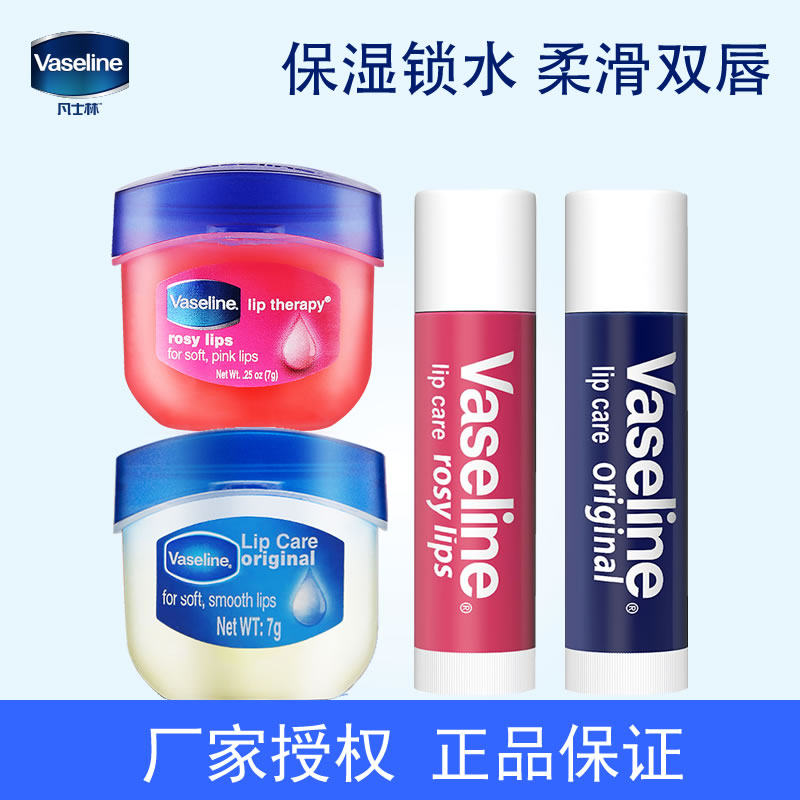 Vaseline凡士林润唇膏柔滑滋养双唇保湿锁水原味玫瑰味焦糖7g3.5g