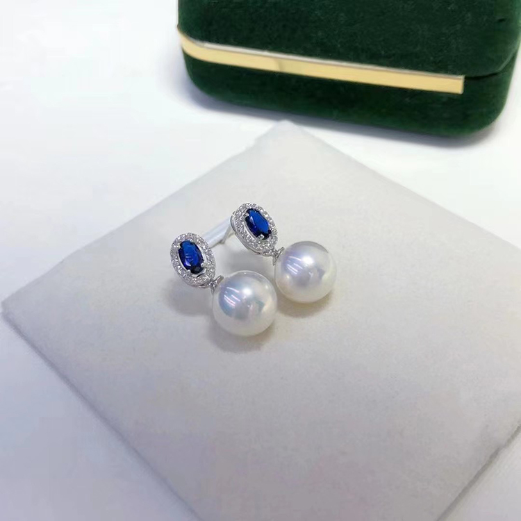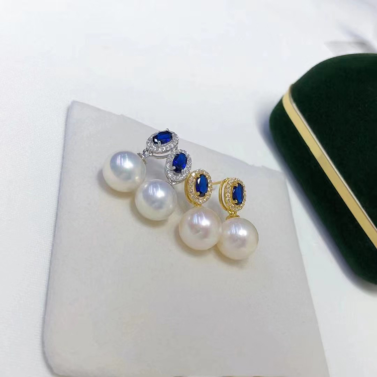 DIY配件S925纯银珍珠耳环耳饰空托蓝宝石彩宝款耳钉珠宝手工银饰