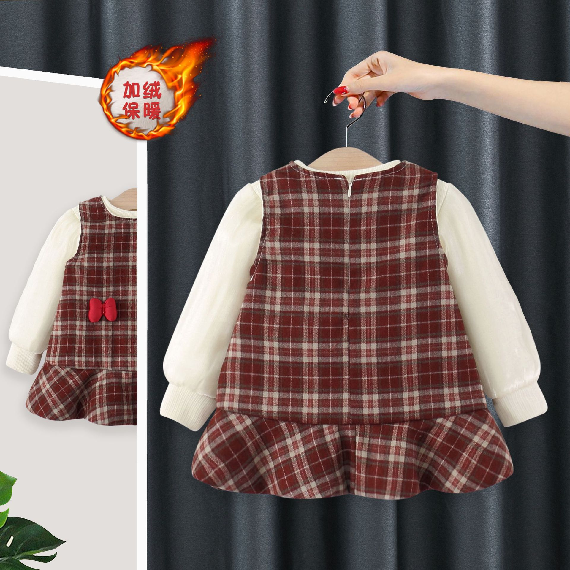 女童2025秋冬款连衣裙儿童套装婴幼儿加绒打底衫T恤背心裙两件套
