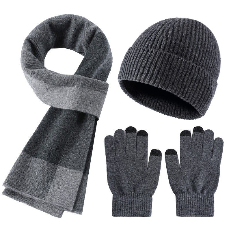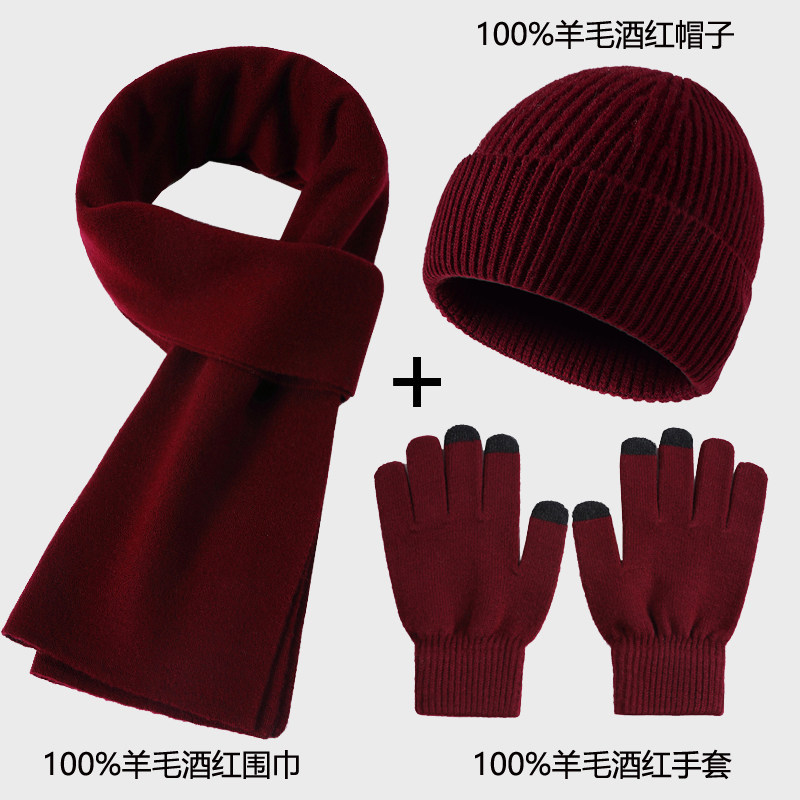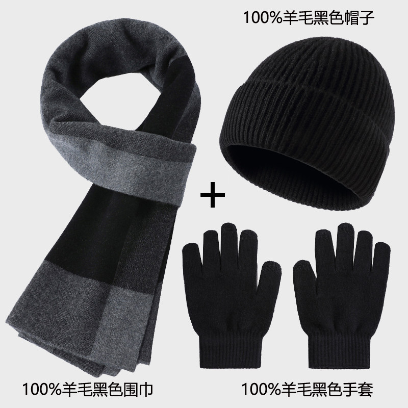 中老年男士帽子爸爸手套男冬季羊毛加厚中年老年人围巾老人三件套