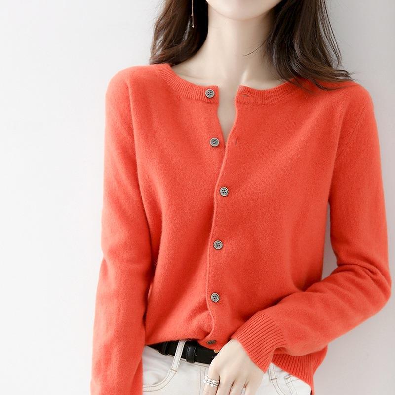 软糯圆领针织开衫女宽松纯色外套女秋季新款外搭长袖上衣